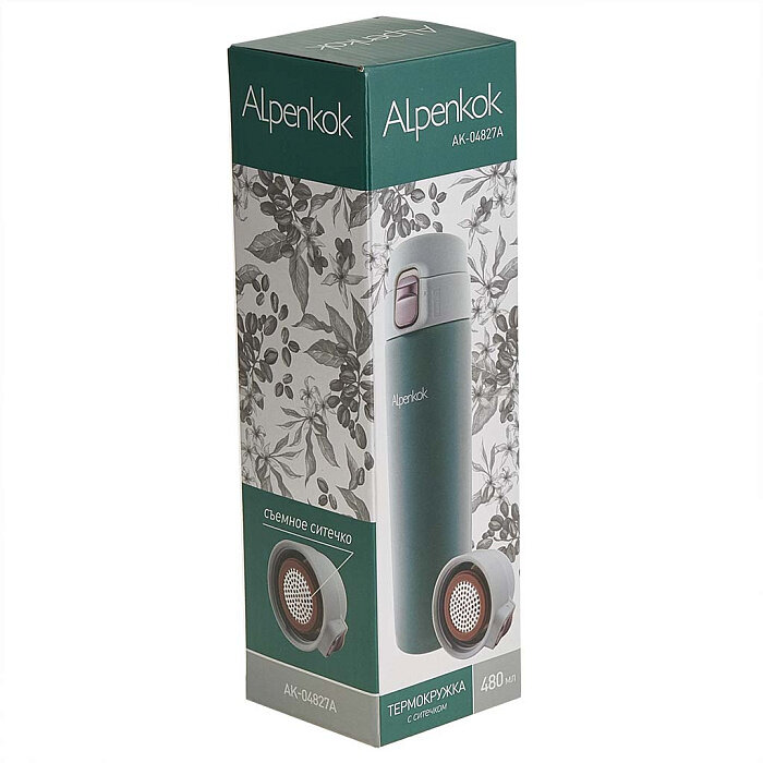 10 цен на Термокружка ALPENKOK AK-04827A зеленая 480 мл. Вакуумная со съемным ситечком