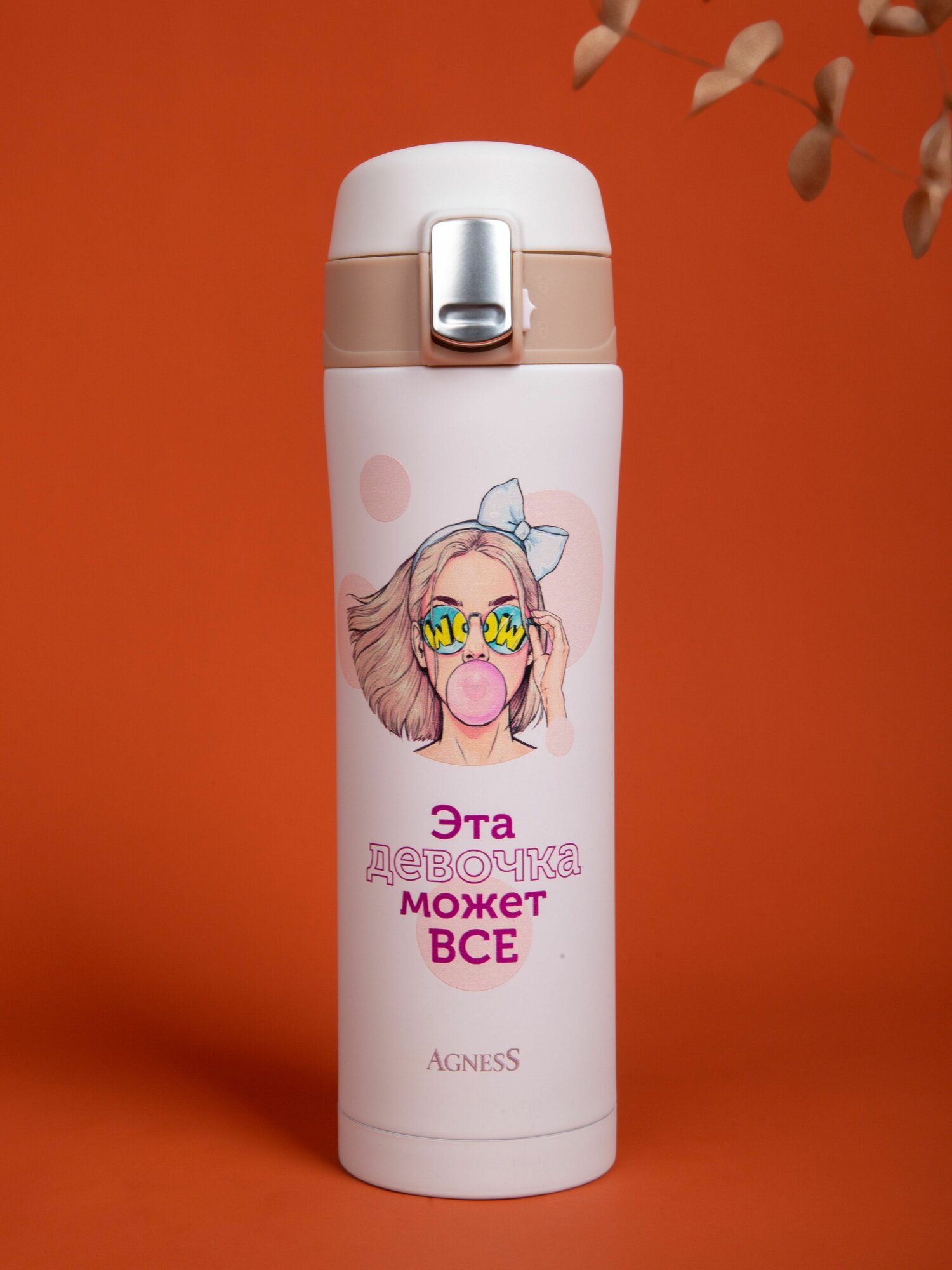 Термокружка Agness "Girl", объем: 420 мл, для чая и кофе, нержавеющая сталь информация: