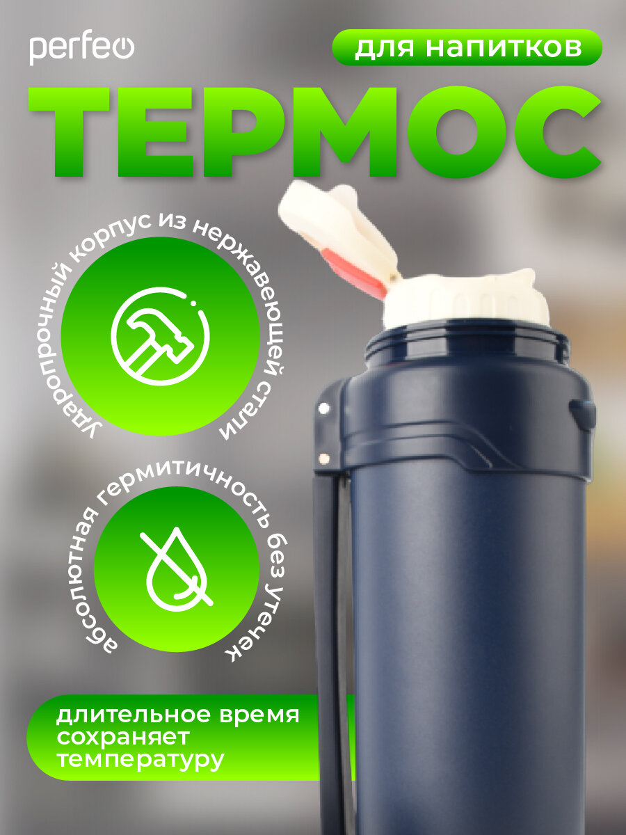 Отзывы на Термос PERFEO для напитков с к/п, ситечком, чашкой, ручкой, ремнем, объем 2 л, синий (PF_E1363)