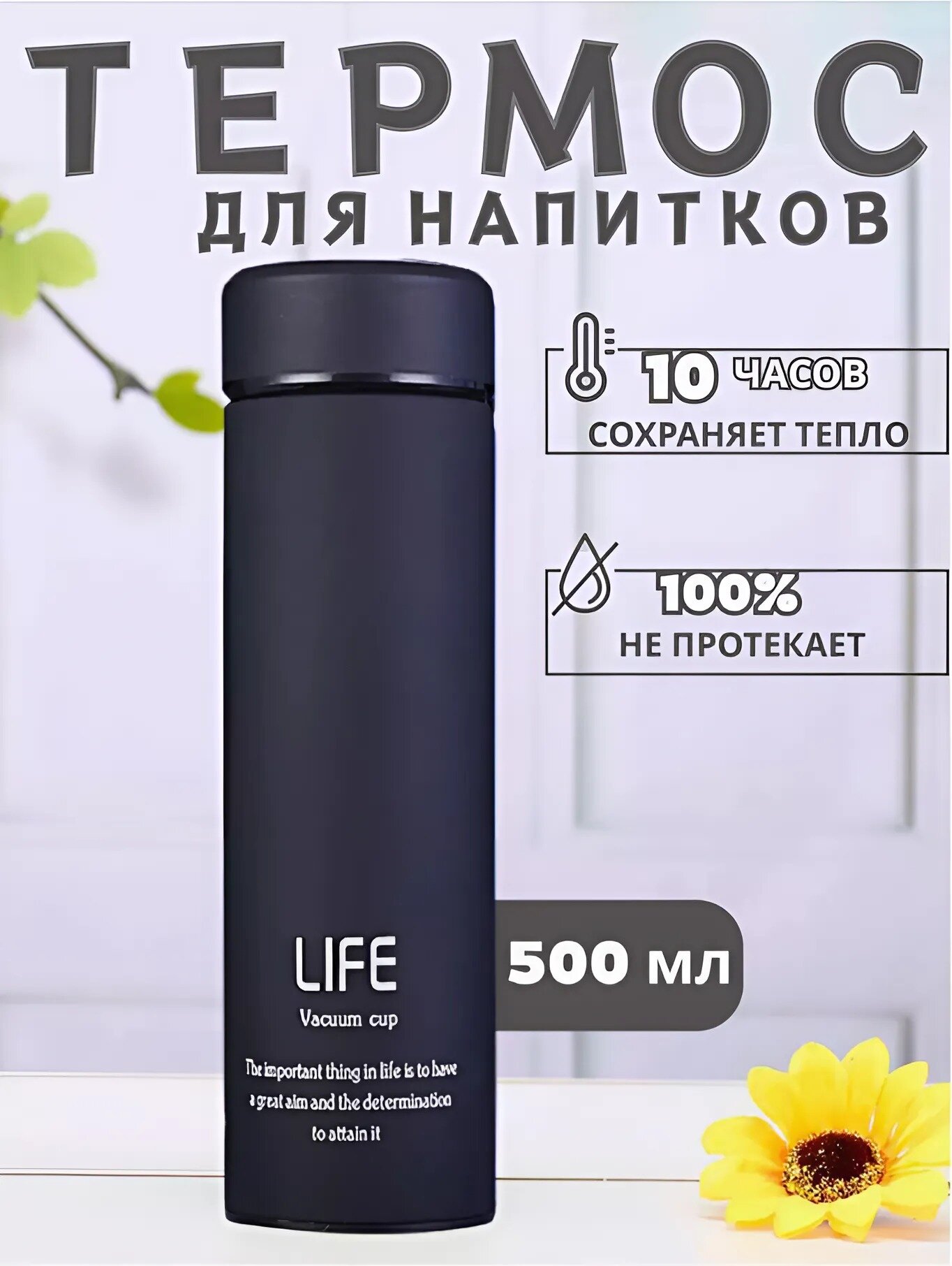 10 цен на Вакуумный универсальный термос для чая и кофе 0,5 л из нержавеющей стали , черный