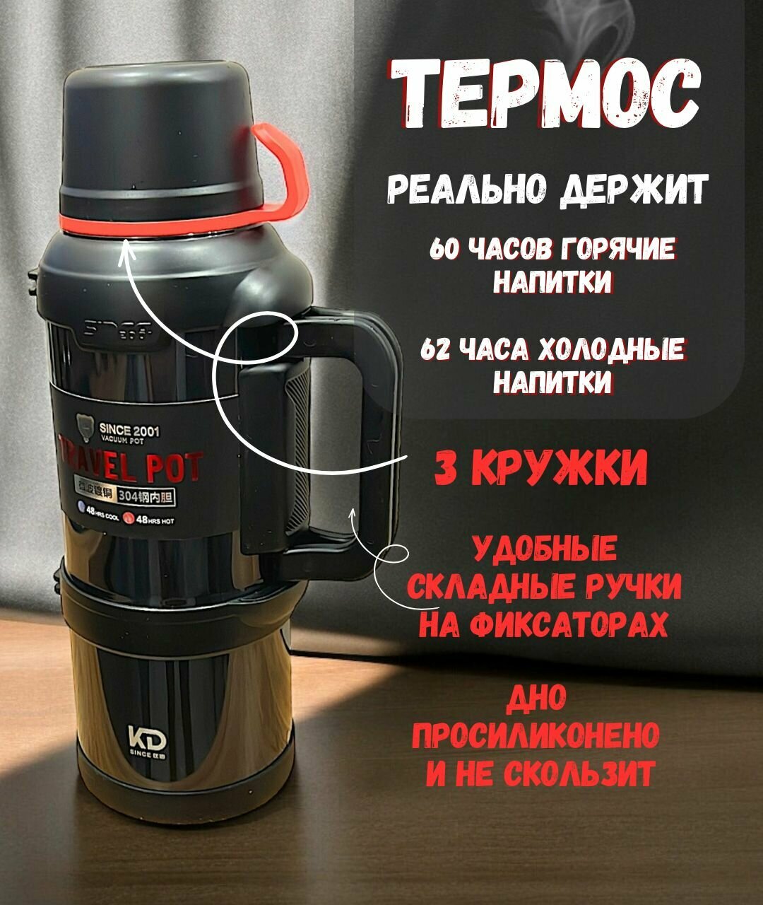 Отзывы на Термос 3.6 литра Вакуумный, Ударопрочный корпус, 3 Крышки-чашки, сохраняет тепло 3 суток