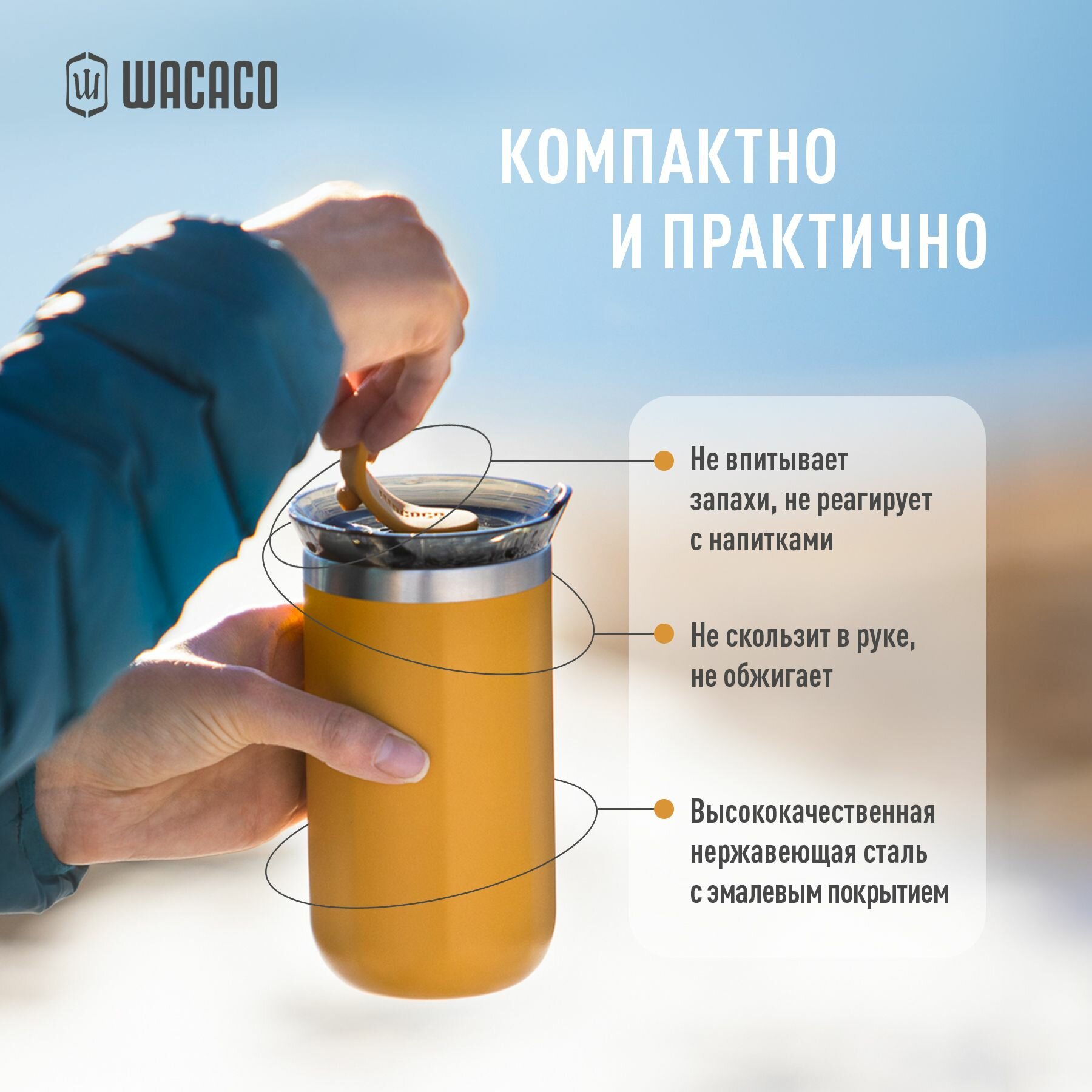 Отзывы на Термокружка для чая или кофе Wacaco Octaroma с вакуумной изоляцией, из нержавеющей стали с двойными стенками и герметичной крышкой, WCCOCTY, объем 300 мл, цвет желтый