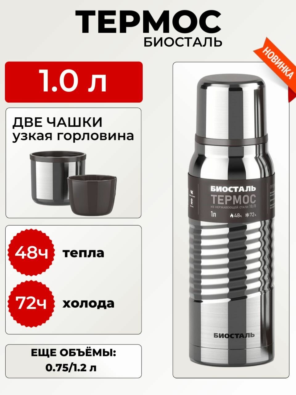 Термос Биосталь 1,2 л для кофе и чая / термос 1200 мл