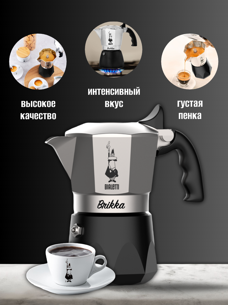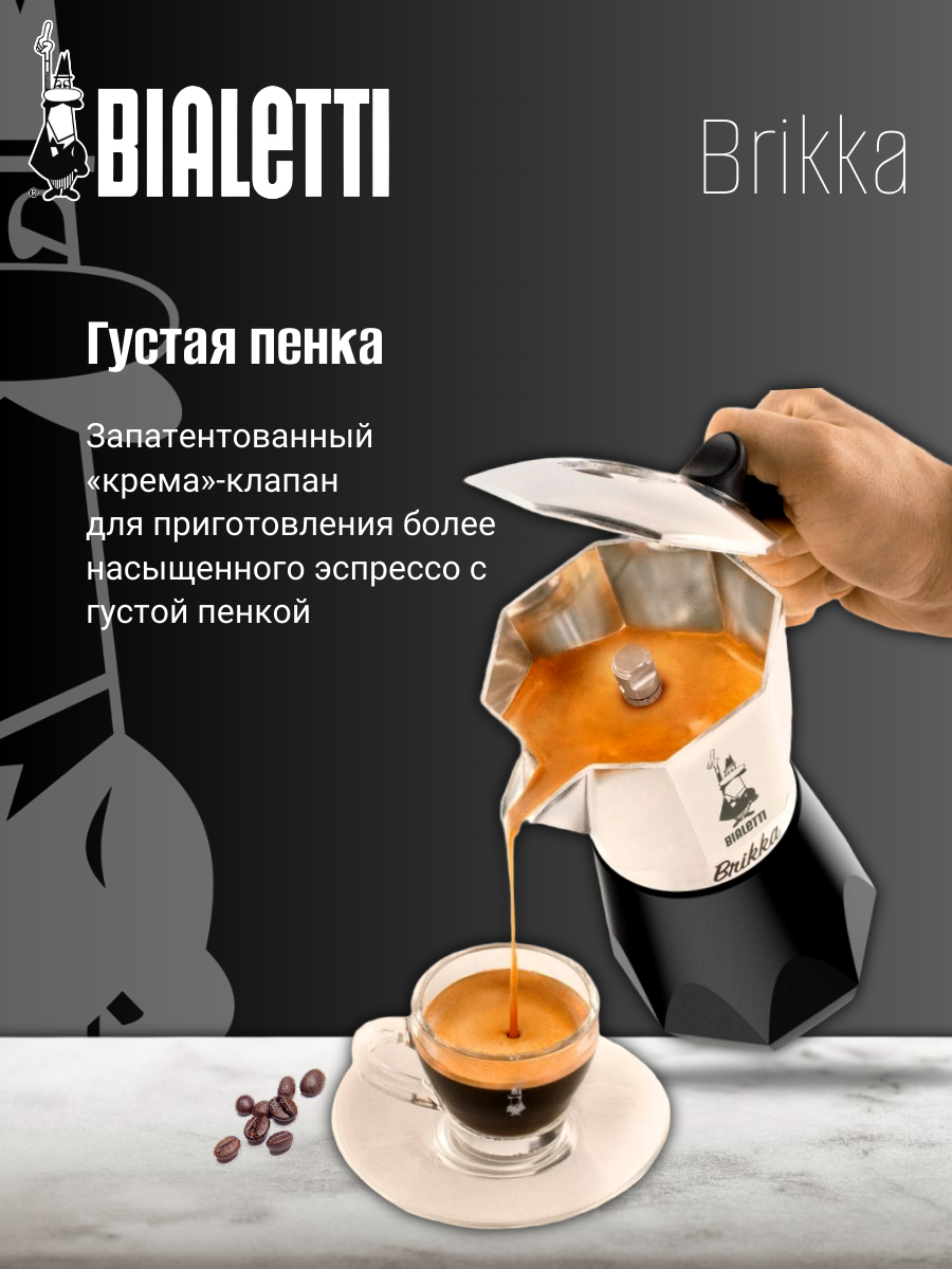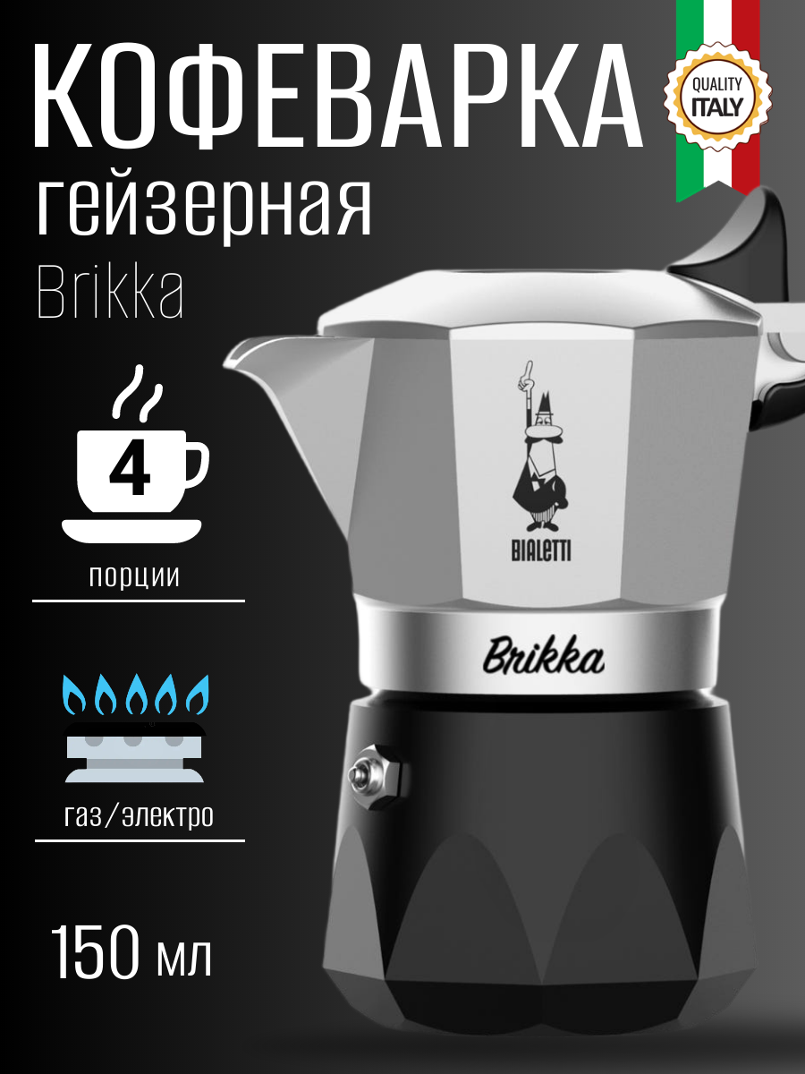 Кофеварка гейзерная Bialetti Brikka 2023 на 4 порции, 150 мл информация: