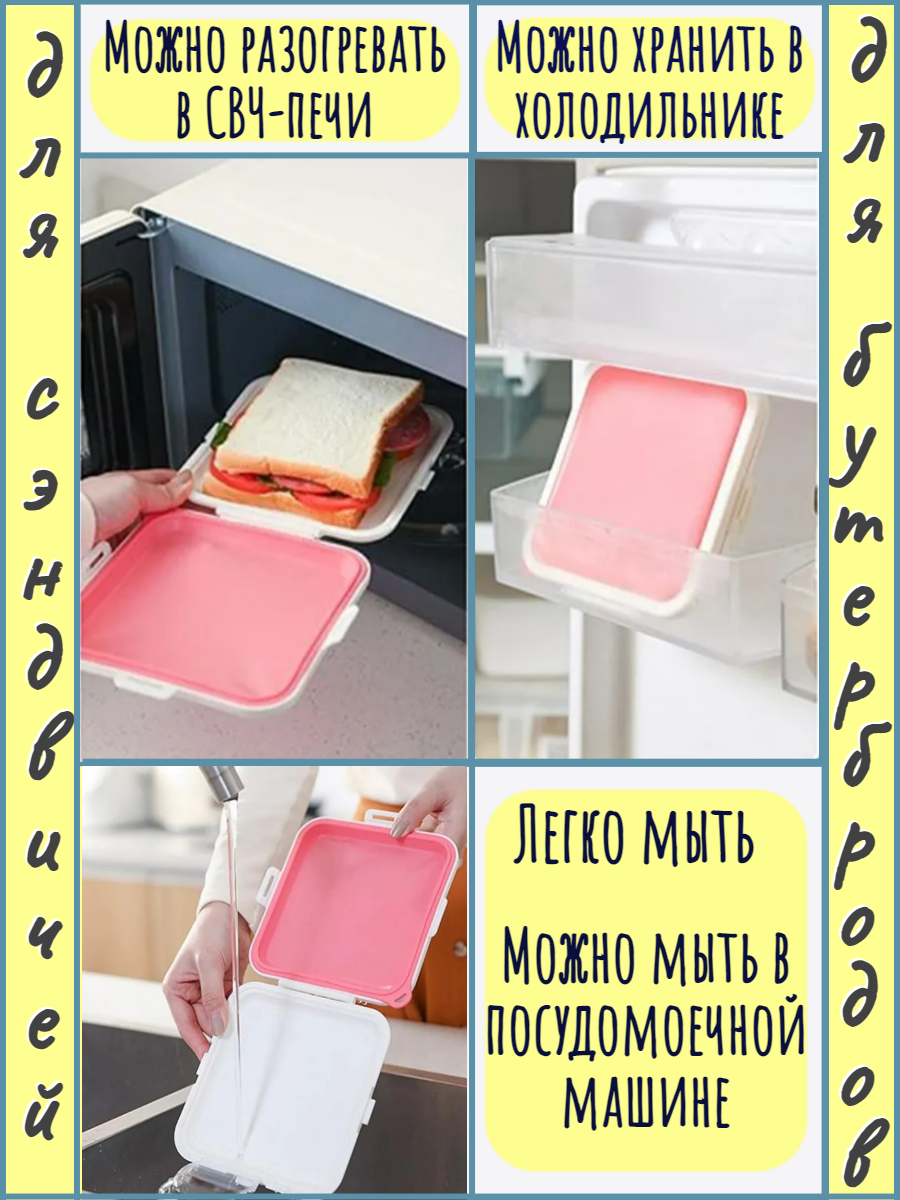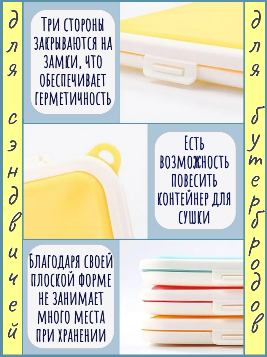 Отзывы на Контейнер для сэндвичей бутербродов еды пластиковый плоский голубой