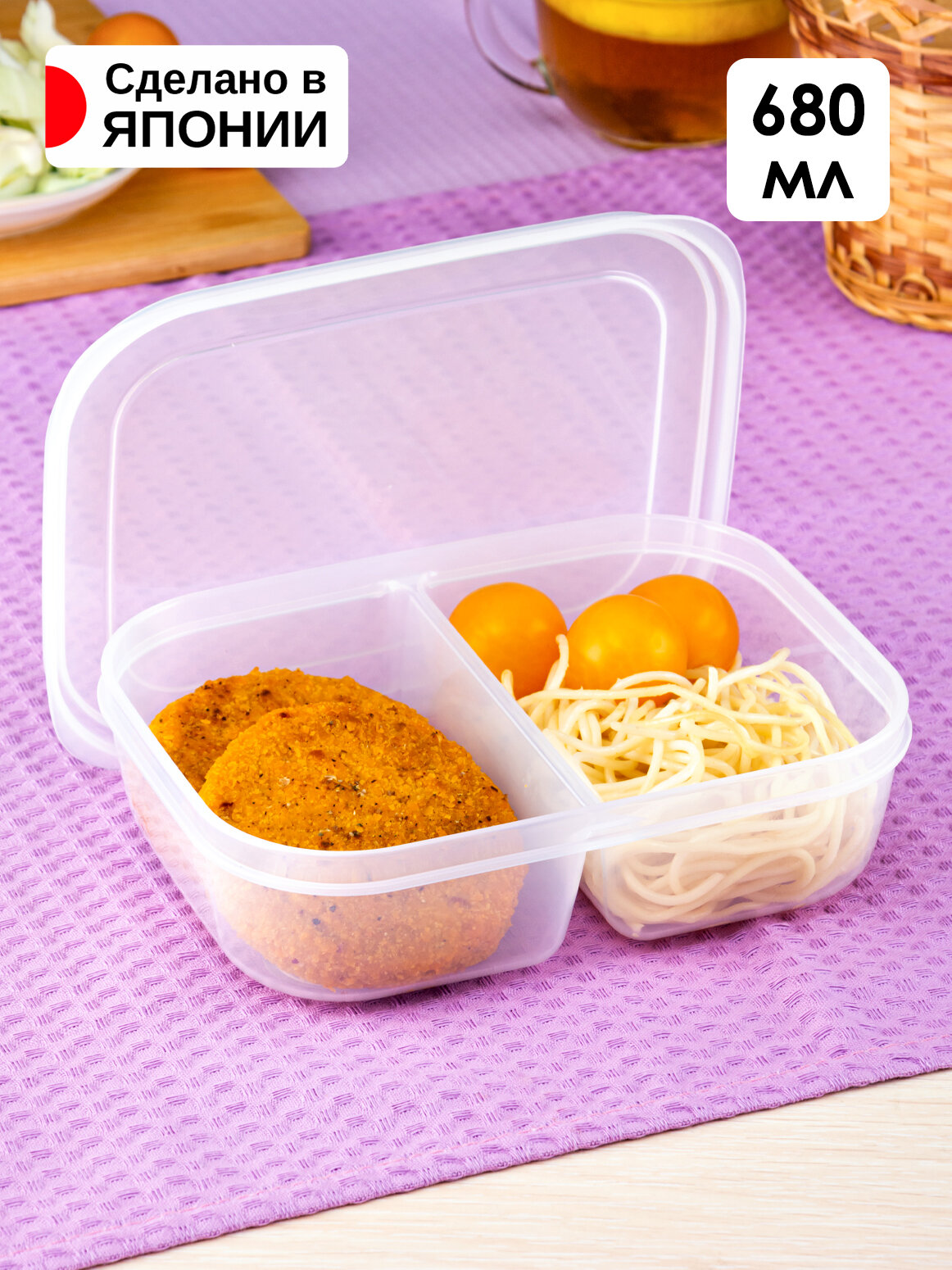 Контейнер для еды пластиковый с крышкой ланч бокс, 2 отделения, 680 мл; 17х12,7х4,9 см информация: