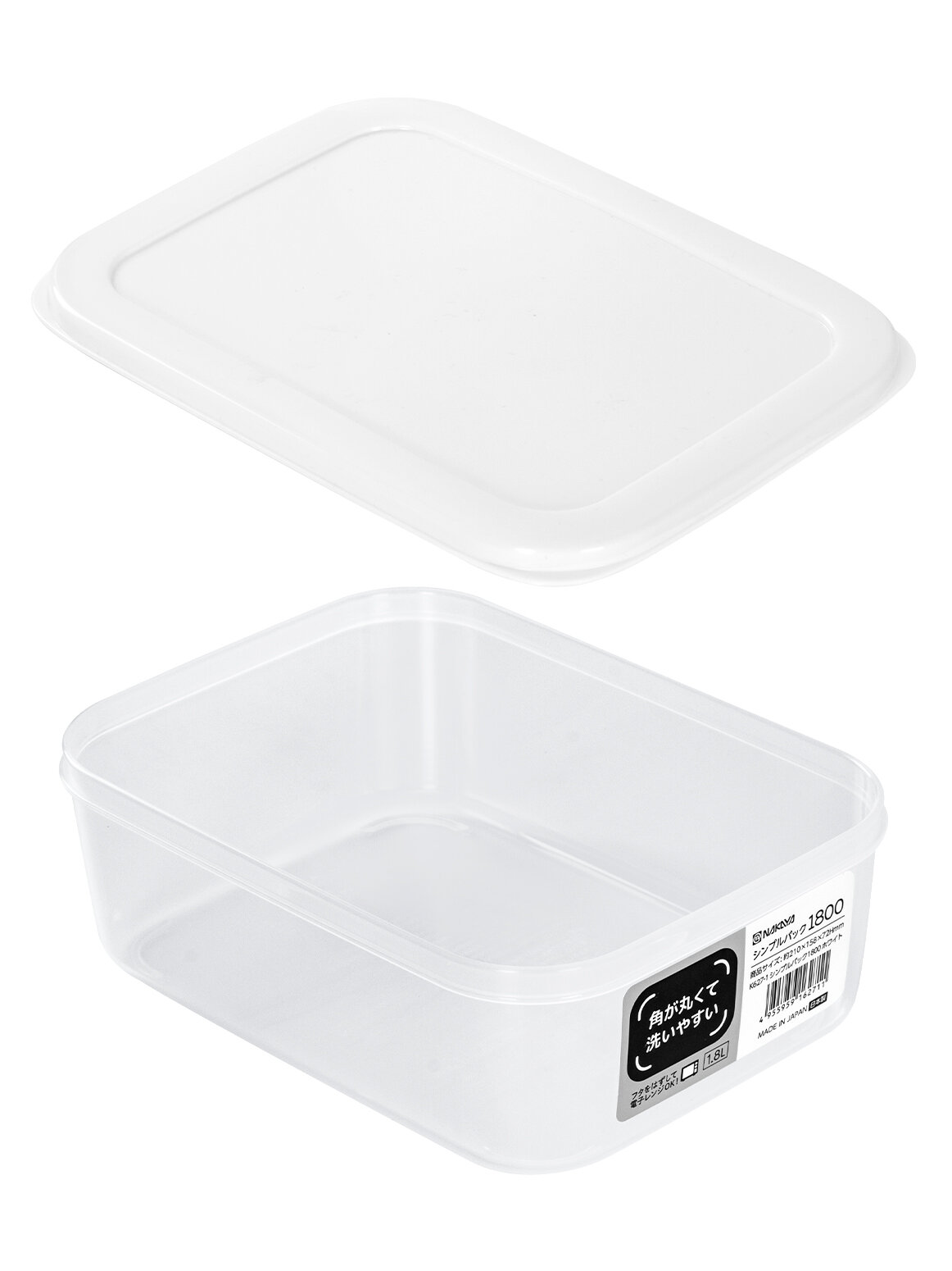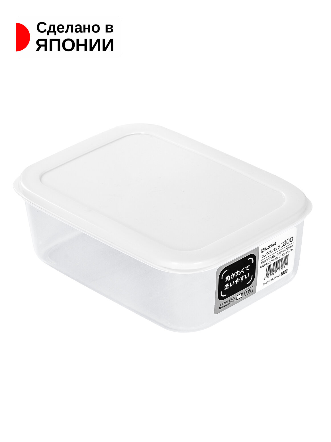 Контейнер для еды и СВЧ пластиковый с крышкой 1,8 л, 21х15,8х7,2 см, белый информация: