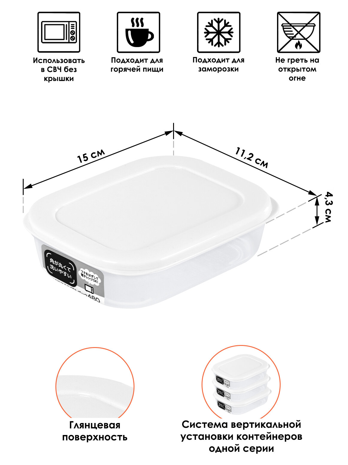 Отзывы на Контейнер для еды и СВЧ пластиковый с крышкой 480 мл, 15х11,2х4,3 см, белый