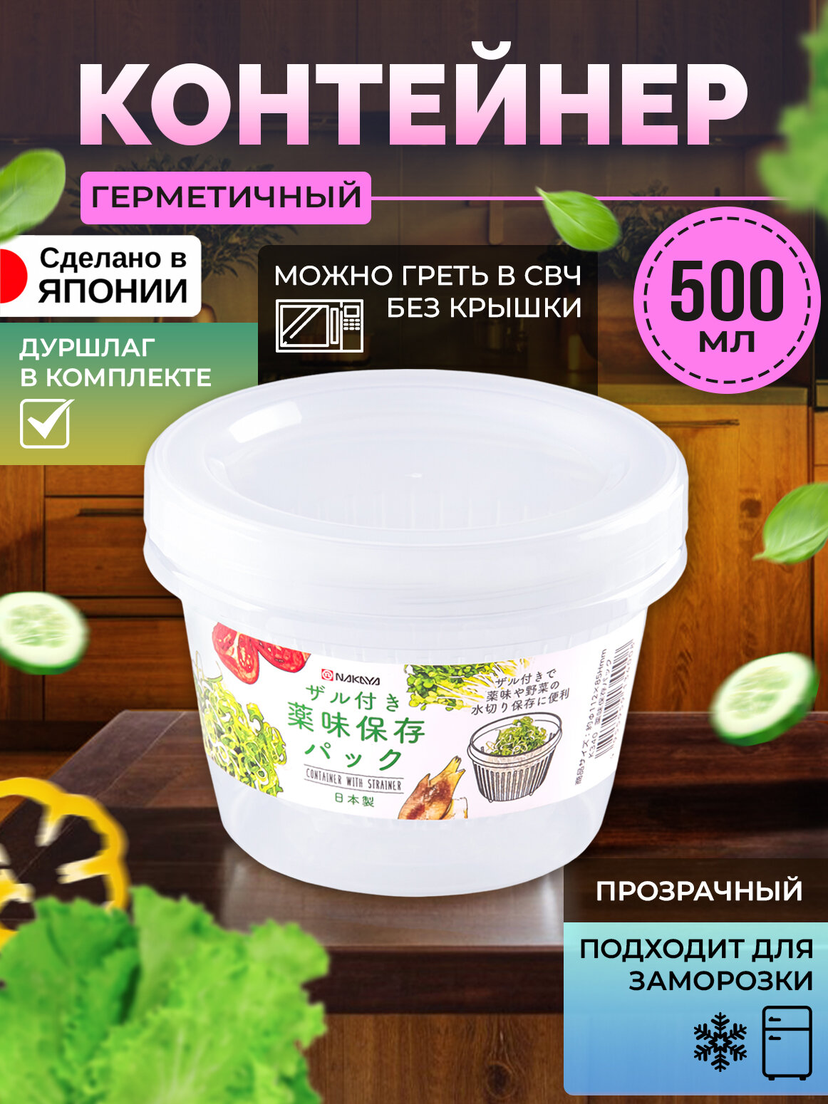 Контейнер для продуктов герметичный с дуршлагом 500 мл Д11,2х8,5 см информация:
