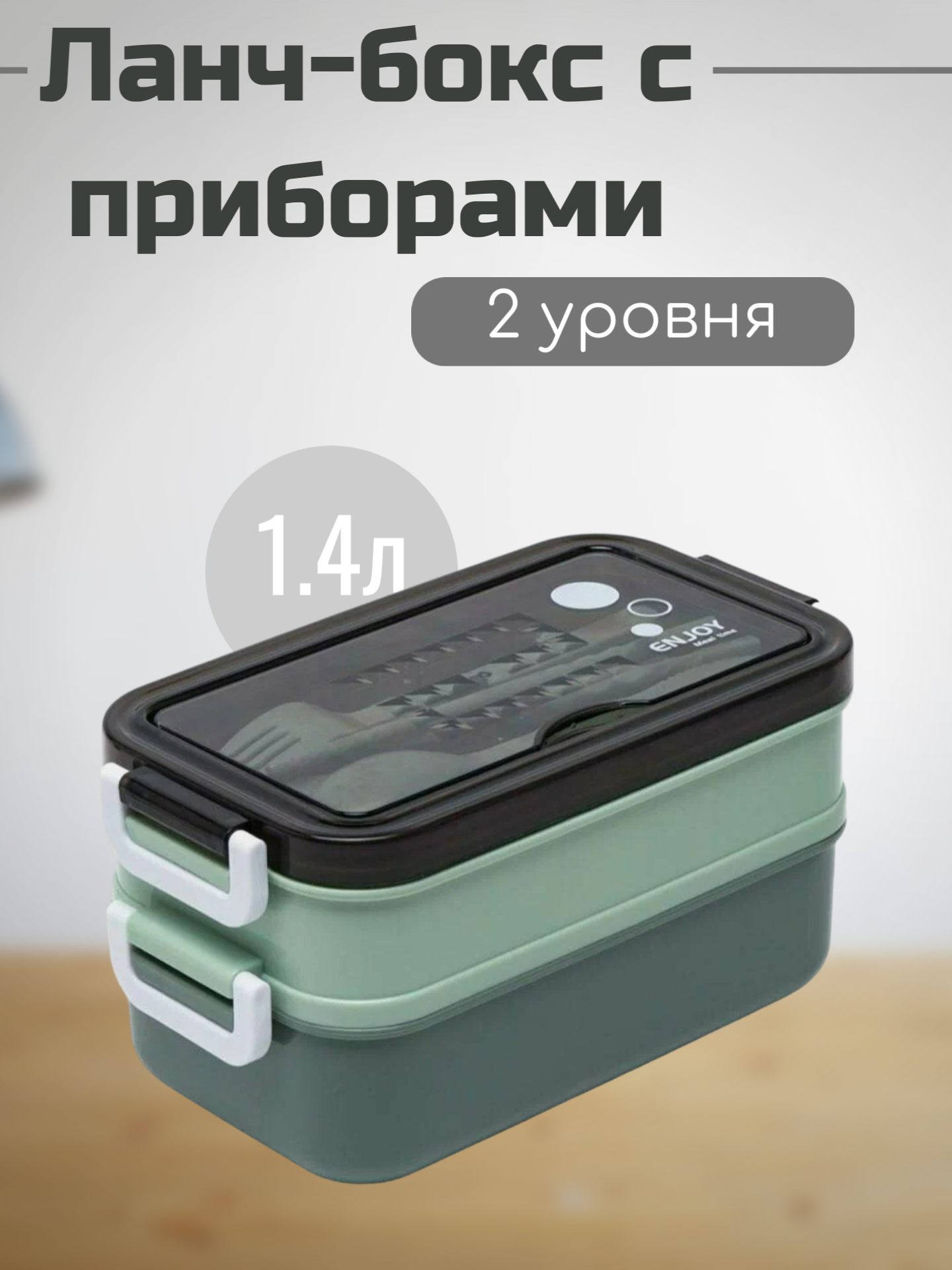 Контейнер для еды с приборами, Ланч бокс с двумя отделениями, 1400мл информация: