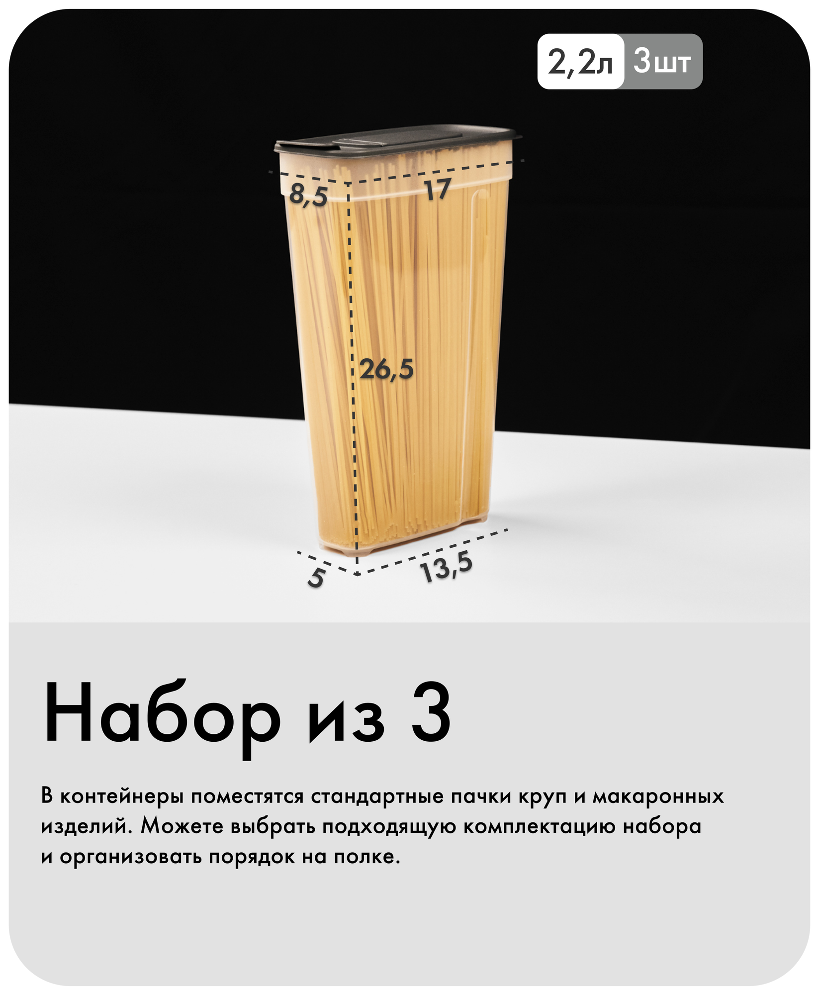 10 цен на Набор контейнеров для сыпучих продуктов №28 (2,2л×3шт) (3шт) (графит)