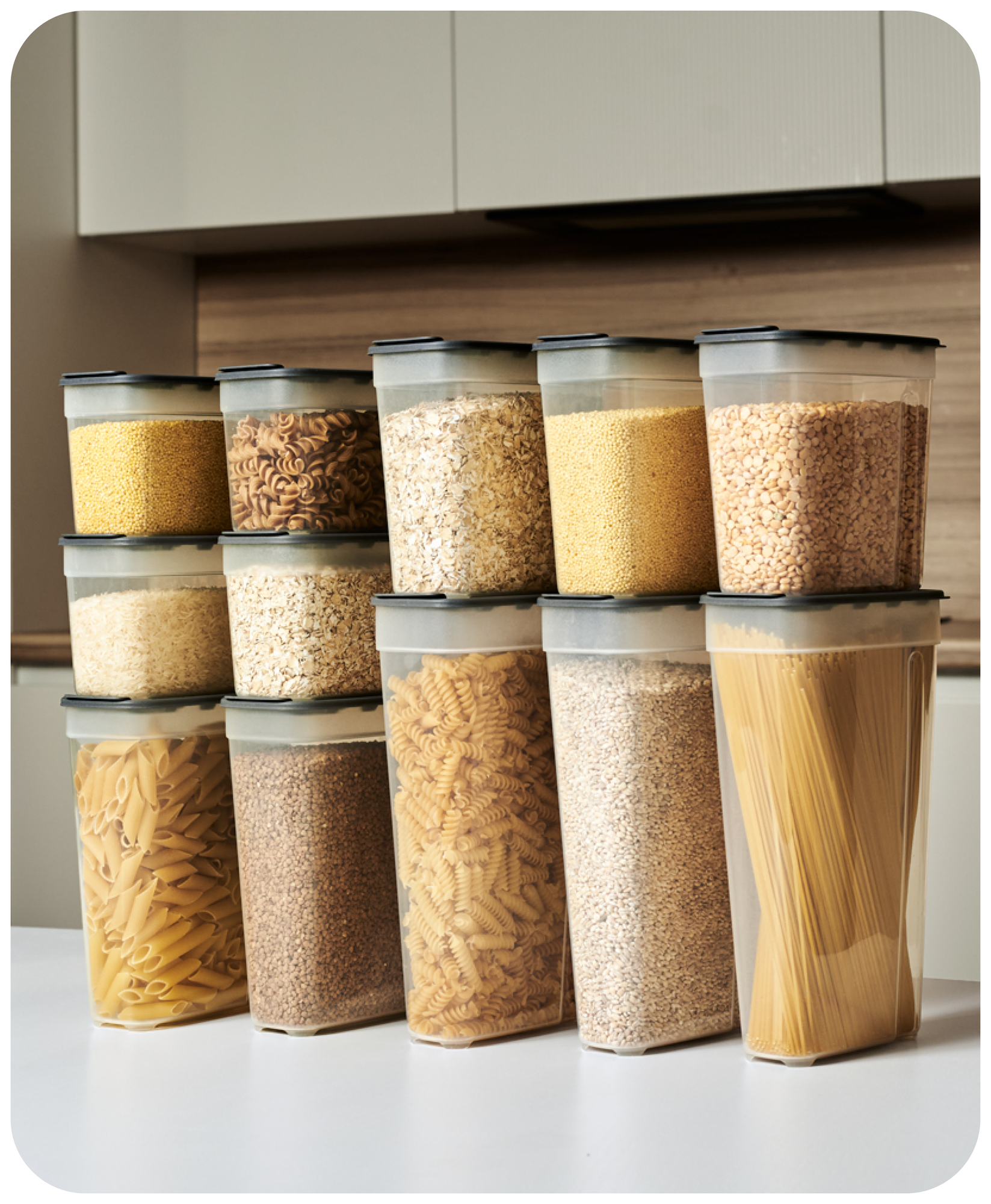 Набор контейнеров для сыпучих продуктов №39 (1,0л×9шт; 1,4л×6шт; 1,8л×3шт; 2,2л×3шт) (21шт) (слоновая кость) 3 630 ₽