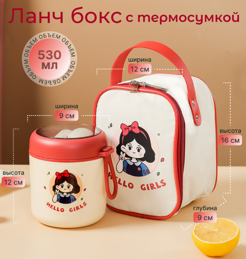 10 цен на Ланч бокс детский с термосумкой, цвет красный