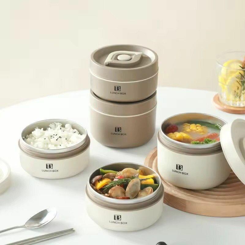 Lunch Box с тремя термо-контейнерами герметичными металл. отделениями для еды, супа, с термо-сумкой для школы 1.4л. Сталь внутри