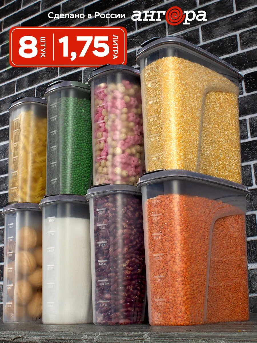 10 цен на Контейнеры для круп банки для хранения сыпучих продуктов, с крышками, с мерной шкалой, прозрачные, набор 8 шт