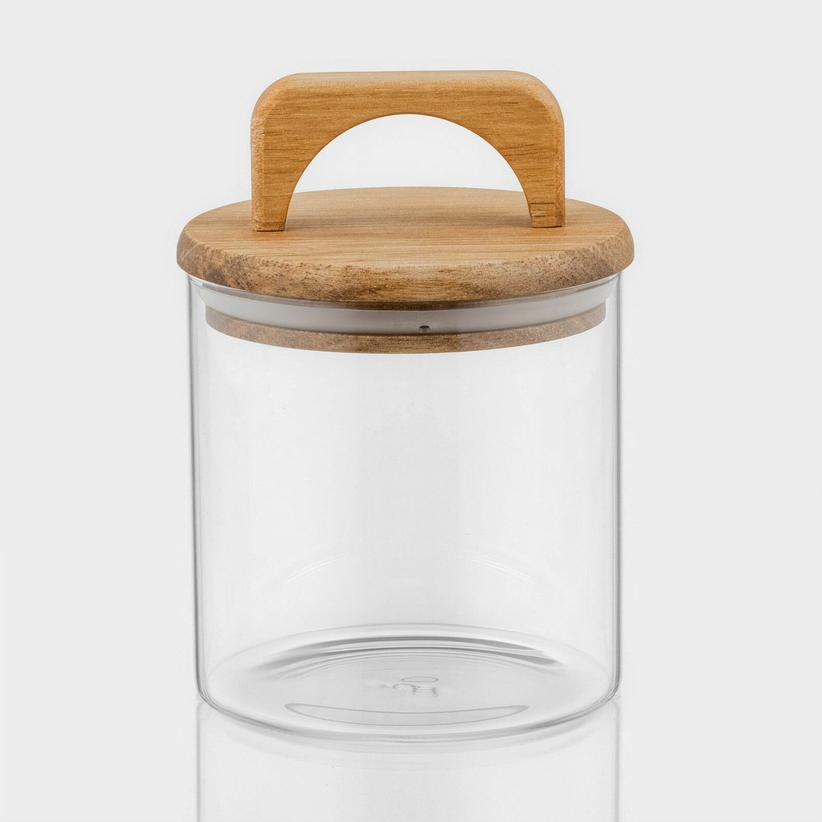10 цен на Банка стеклянная для сыпучих продуктов с деревянной крышкой "Вуд", 600 мл, 10х14 см