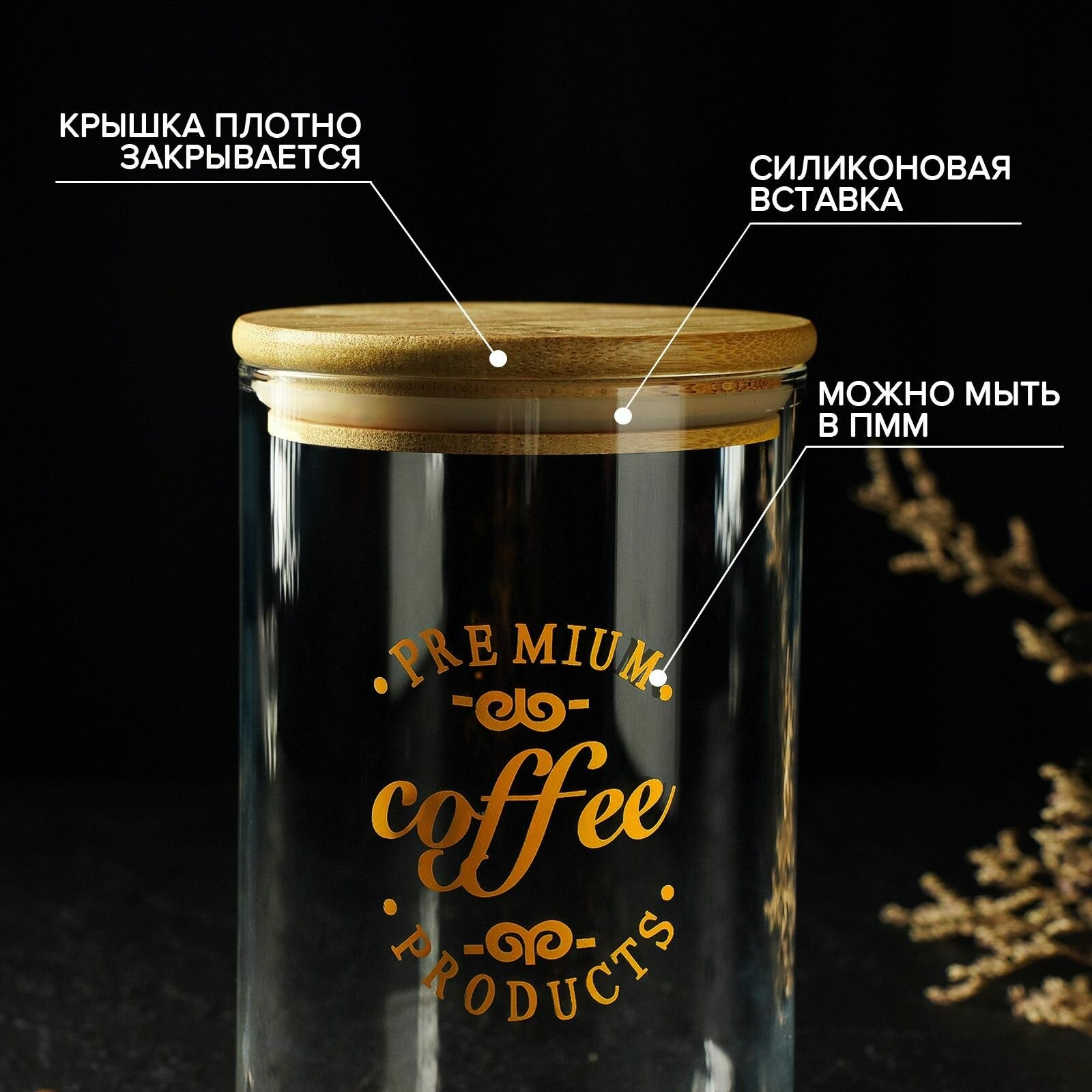 Банка для сыпучиx продуктов с крышкой из бамбука Эко. Кофе, 1 л информация: