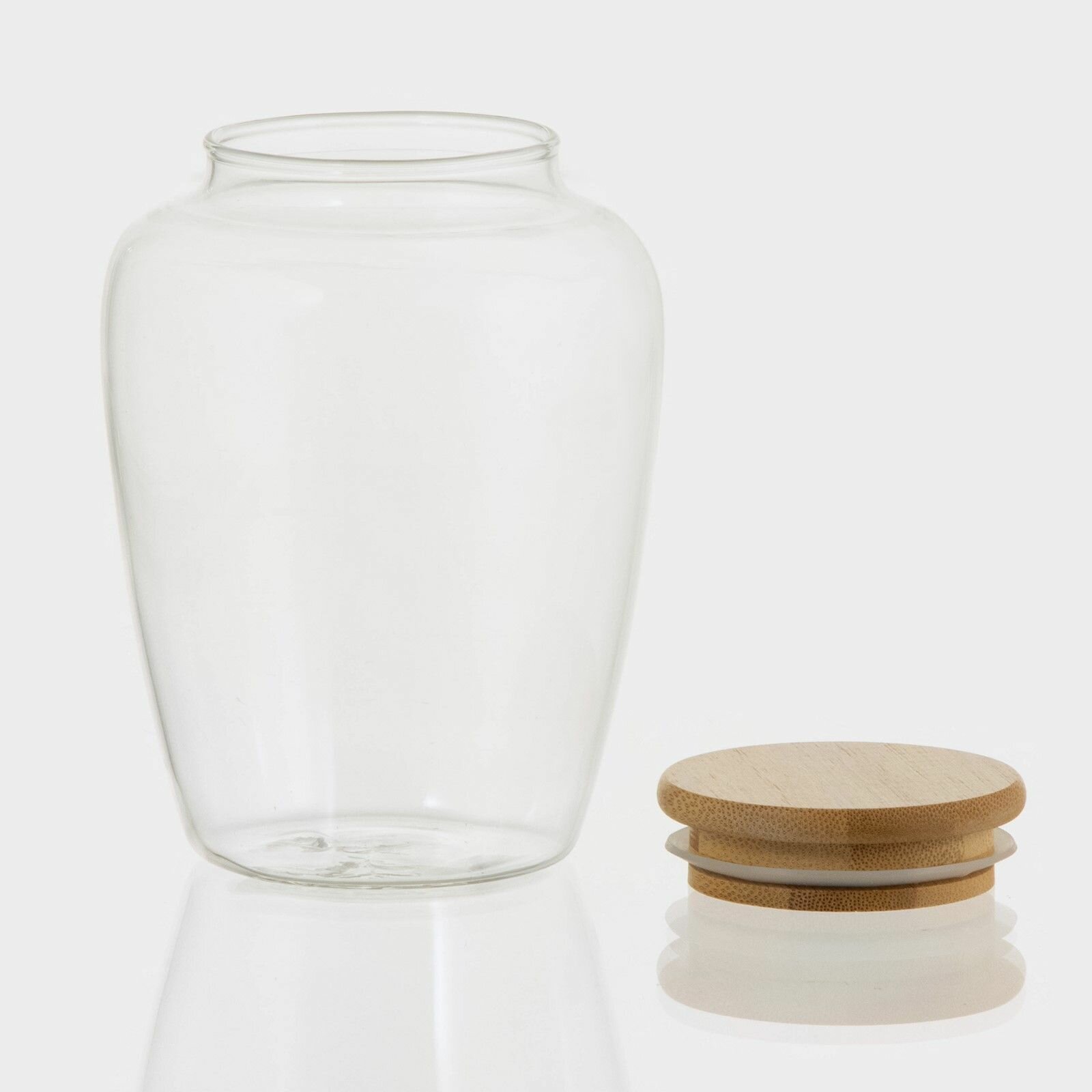 10 цен на Банка стеклянная для сыпучих продуктов с бамбуковой крышкой "Эко. Кубышка", 750 мл, 10,5х14,5 см
