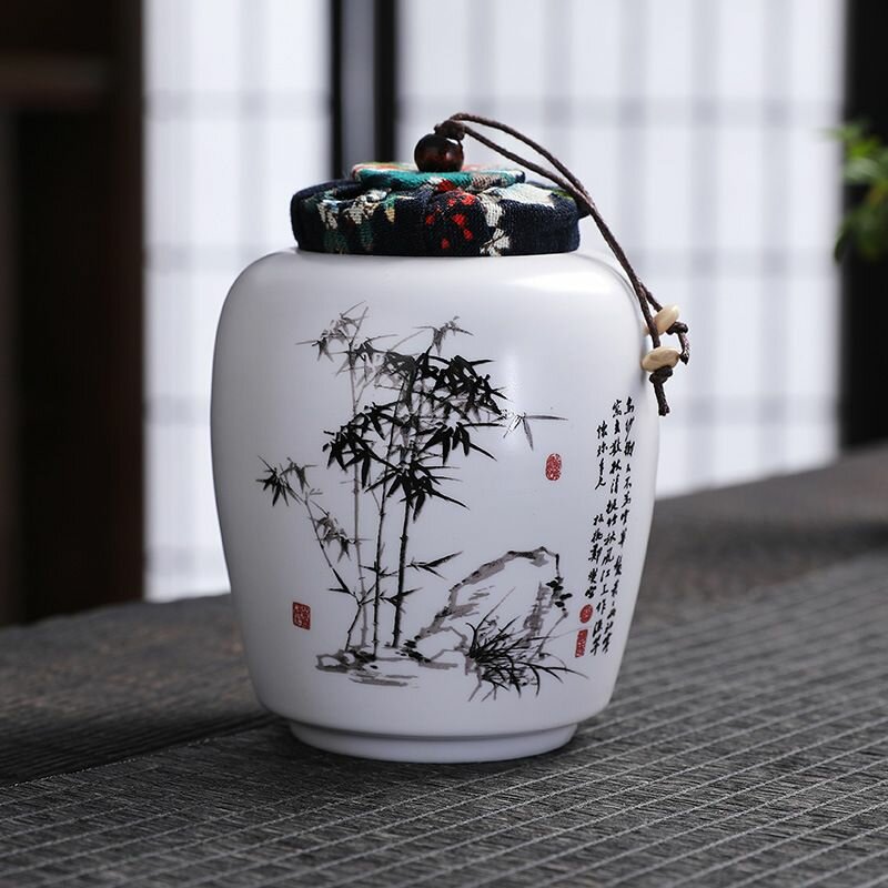 Банка для хранения чая и сыпучих продуктов "Водный городок Цзяннань", 450 мл./ керамическая, с тканевой крышкой 1 700 ₽