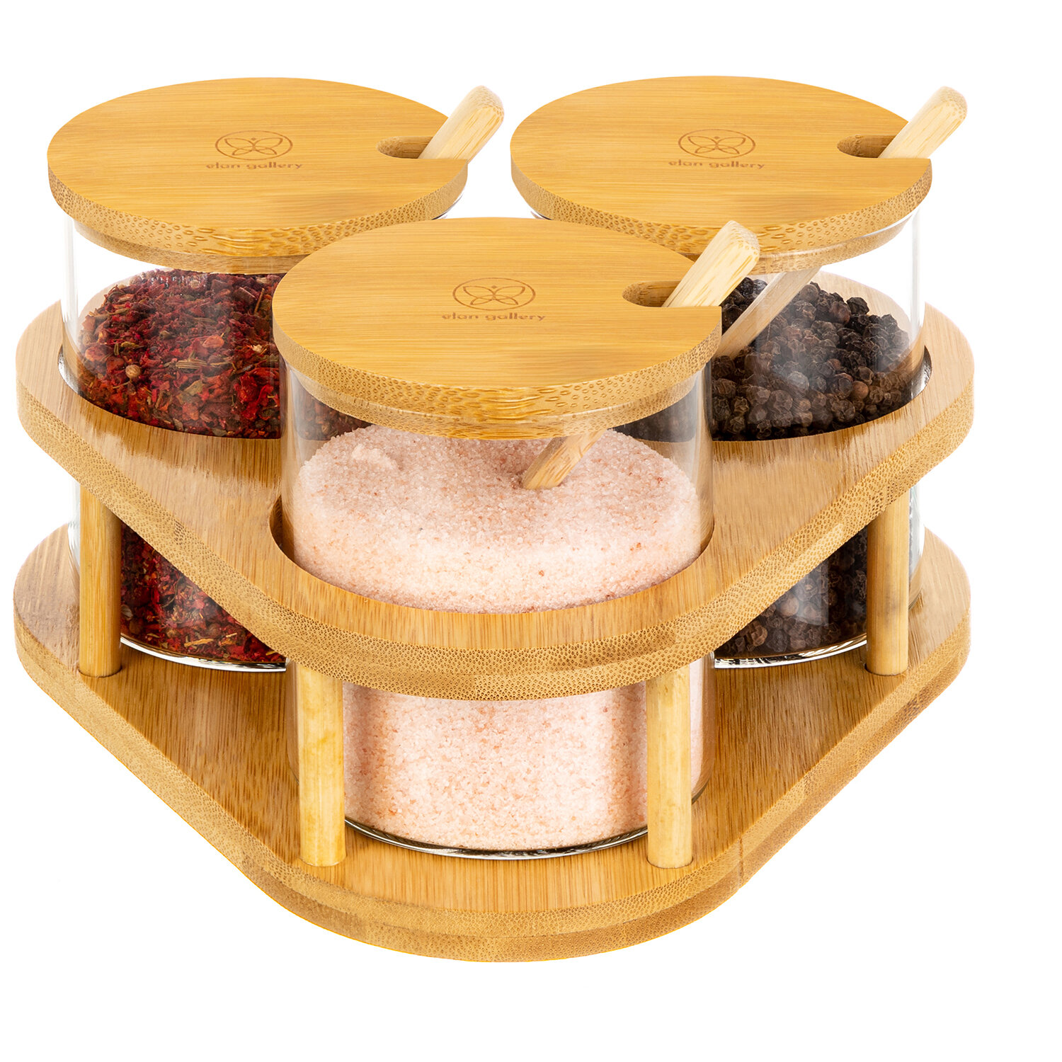 Отзывы на Банка для хранения сыпучих продуктов, соли, специй 3шт 380мл Elan Gallery Crystal glass с крышками, ложками, на подст.