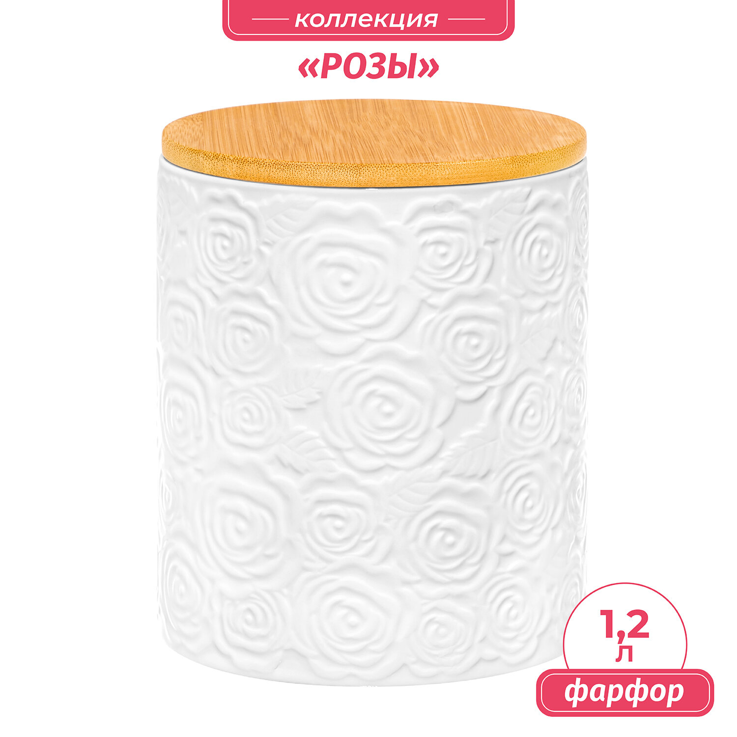Банка для хранения сыпучих продуктов, соли, специй, чая, кофе 1,2 л Elan Gallery Розы, с дер. крышкой с силик. уплотн. информация: