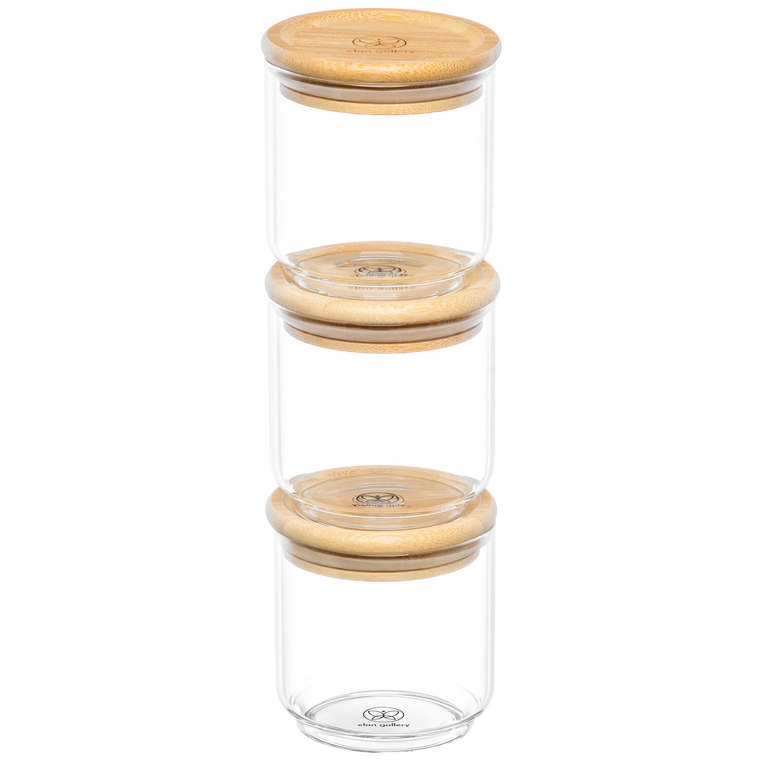 10 цен на Банка для хранения сыпучих продуктов 3 шт по 250 мл Elan Gallery Crystal glass с бамбуковой крышкой, набор