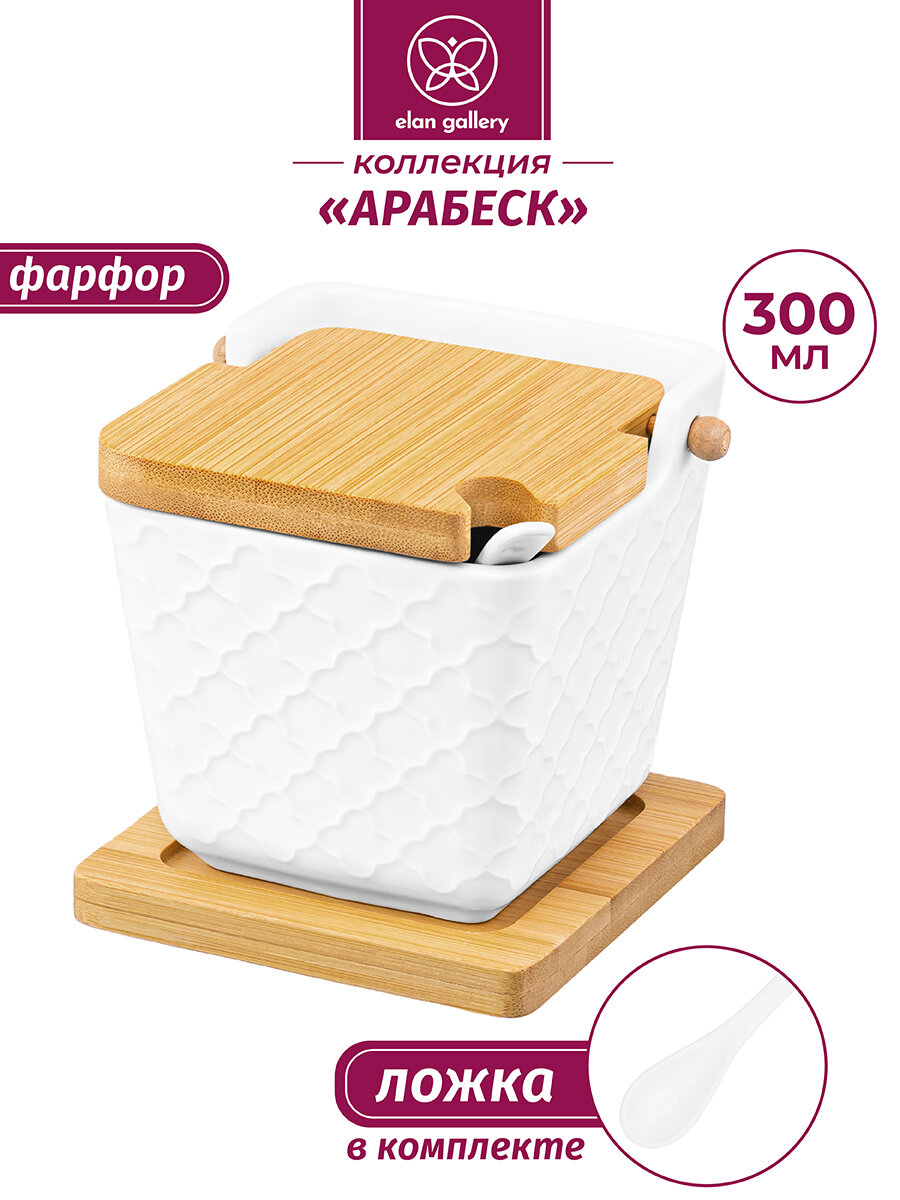 10 цен на Банка для хранения сыпучих продуктов, соли, специй, чая, кофе 300 мл Elan Gallery Арабеск, с ложкой, крышкой, на подст.