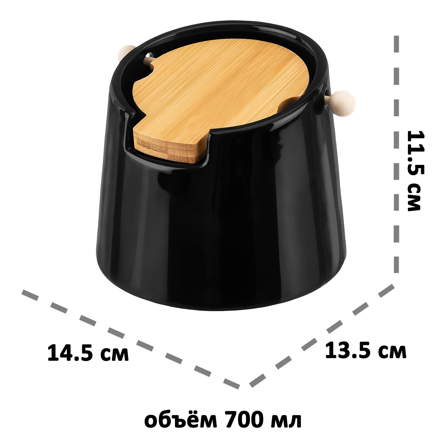 Банка для хранения сыпучих продуктов/ соли/ специй/ чая/ кофе 700 мл Elan Gallery Черная, с откидной бамбуковой крышкой информация: