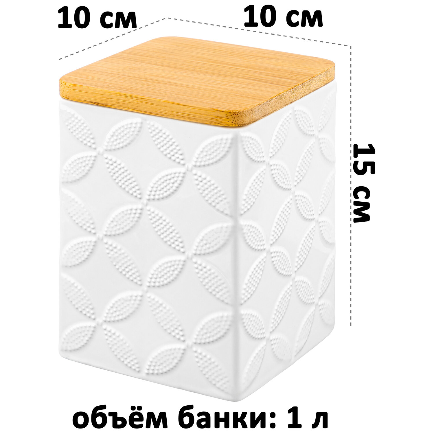 Банка для хранения сыпучих продуктов, соли, специй, чая, кофе 1 л Elan Gallery Узоры, с дер. крышкой с силик. уплотнит. информация: