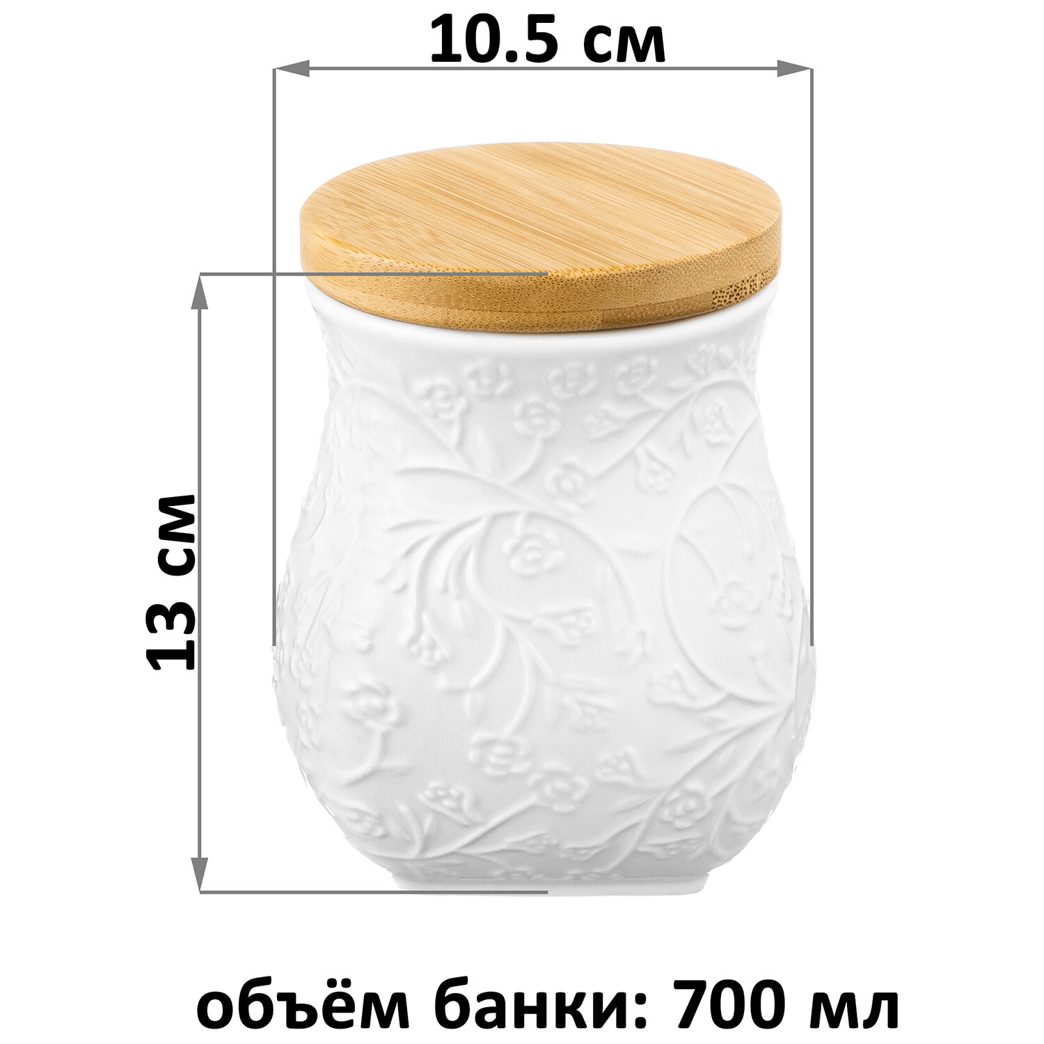 Банка для хранения сыпучих продуктов 700 мл Elan Gallery Веточки-цветочки с деревянной крышкой с силик. уплотнителем информация:
