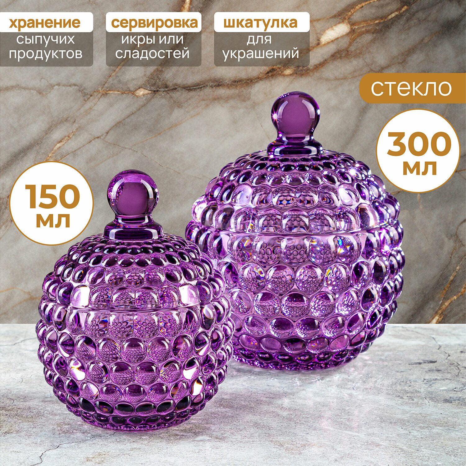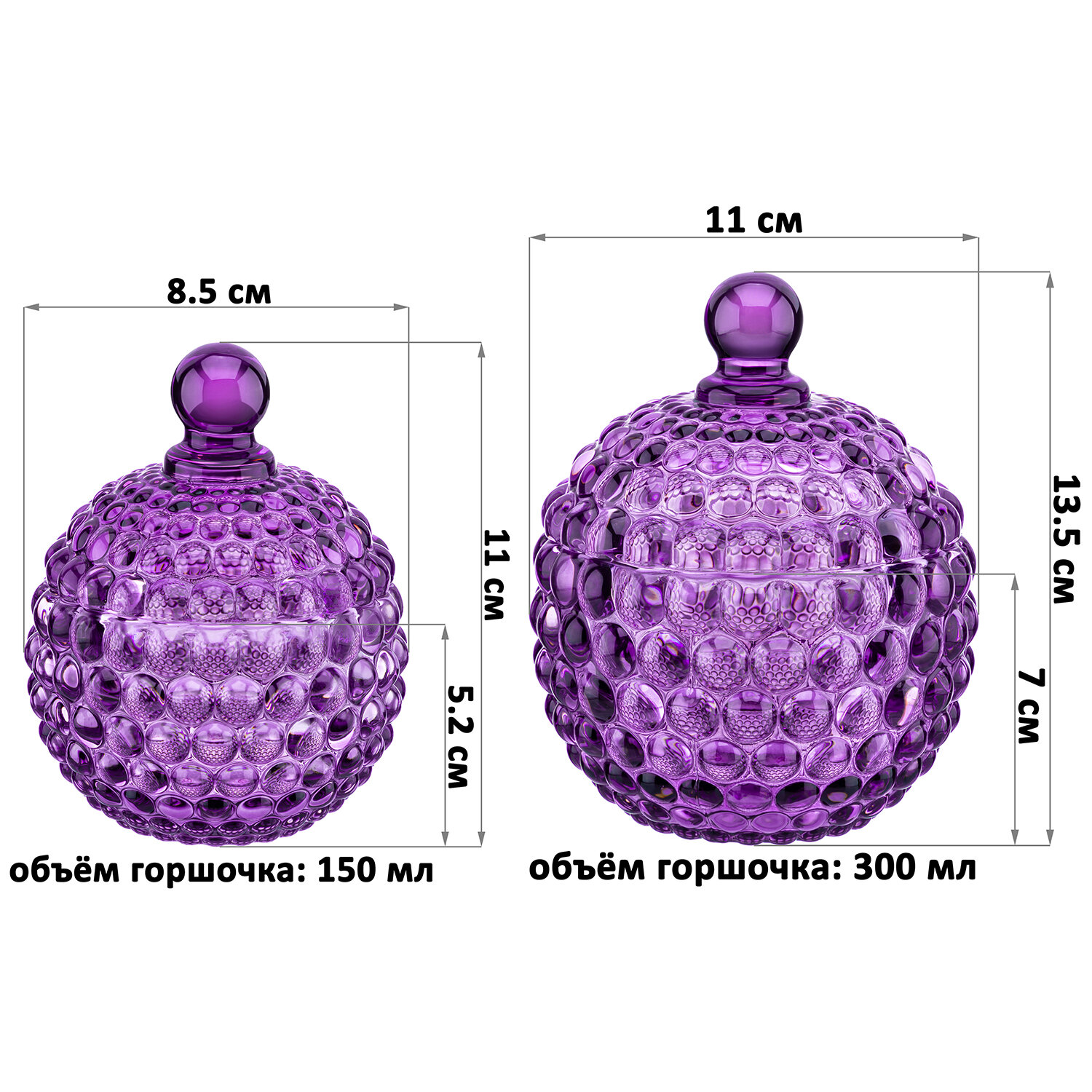 Горшочек для меда, для варенья 2 шт Elan Gallery Пузырьки 150 мл + 300 мл, фиолетовый, набор информация: