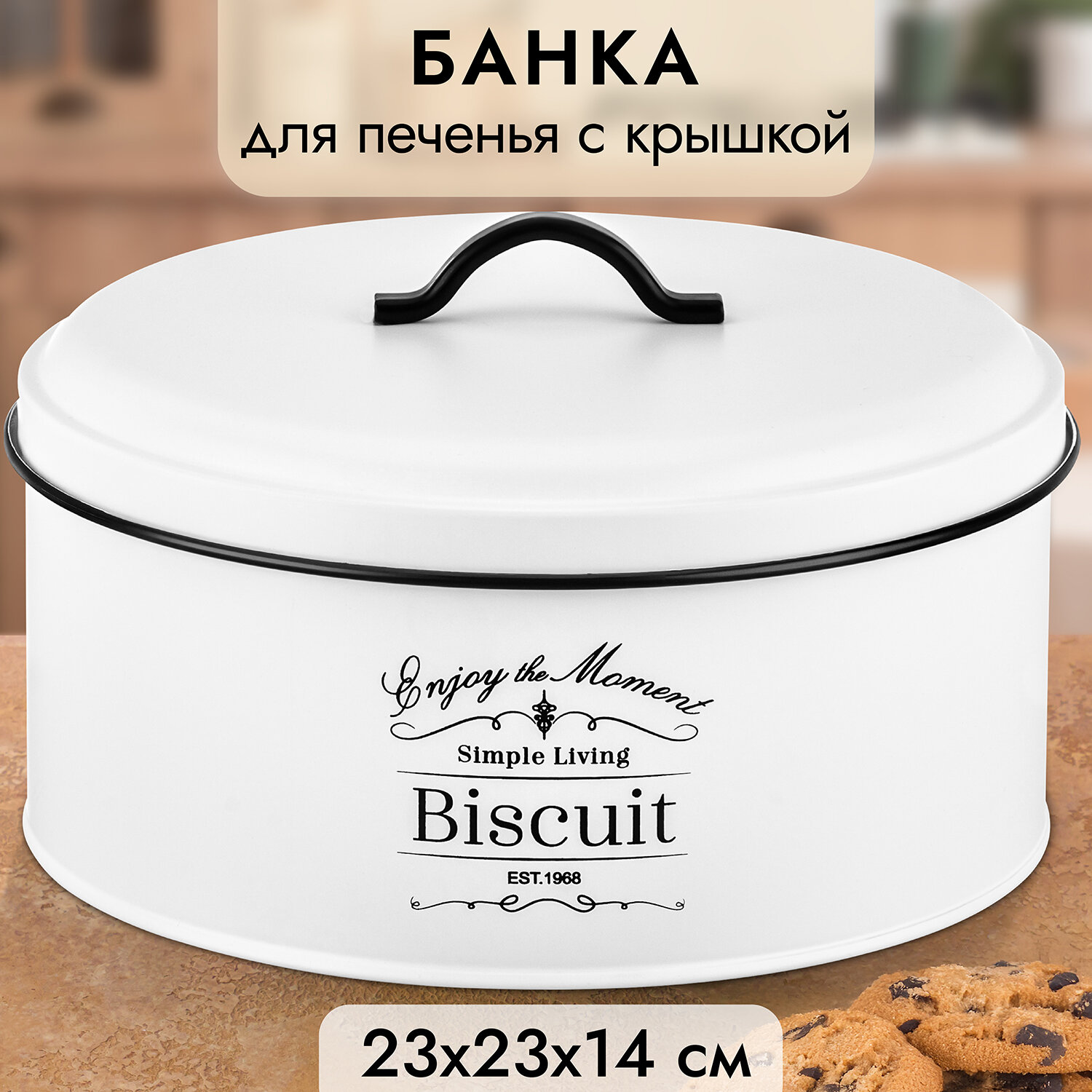 Банка для печенья, для хранения сыпучих продуктов 3 л Elan Gallery Bisсuit с крышкой , белая