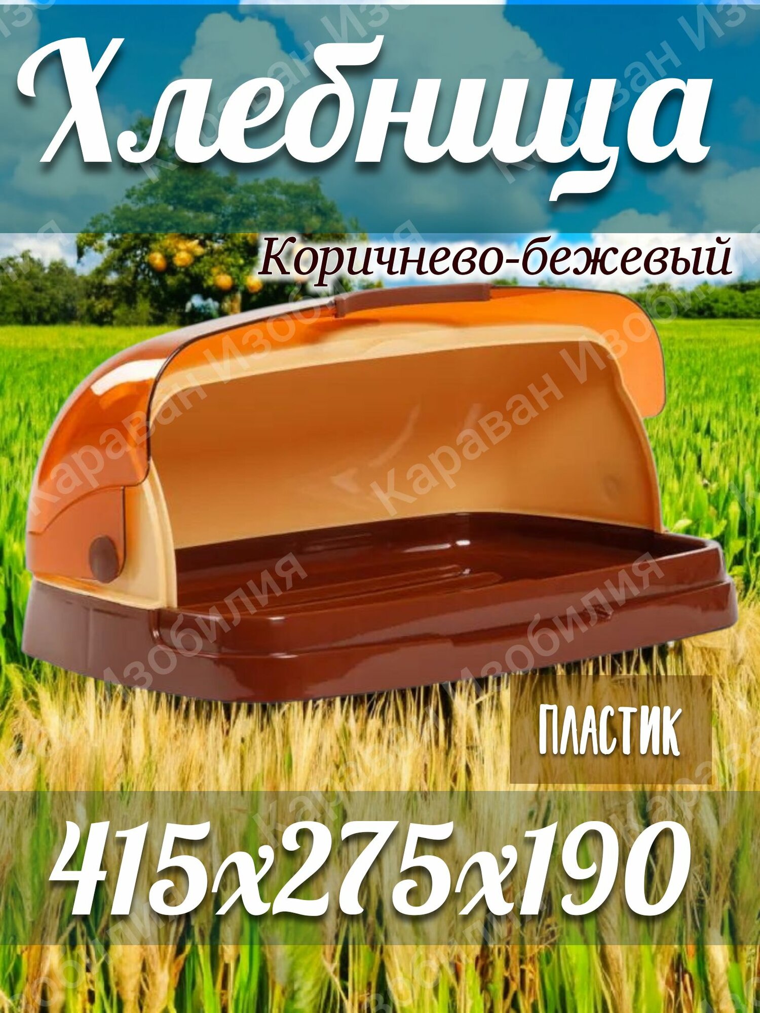 10 цен на Хлебница" Урожай" Пластиковая настольная хлебница с крышкой для кухни, вместительная форма не впитывает запахи бежево-коричневый h 415х275х190