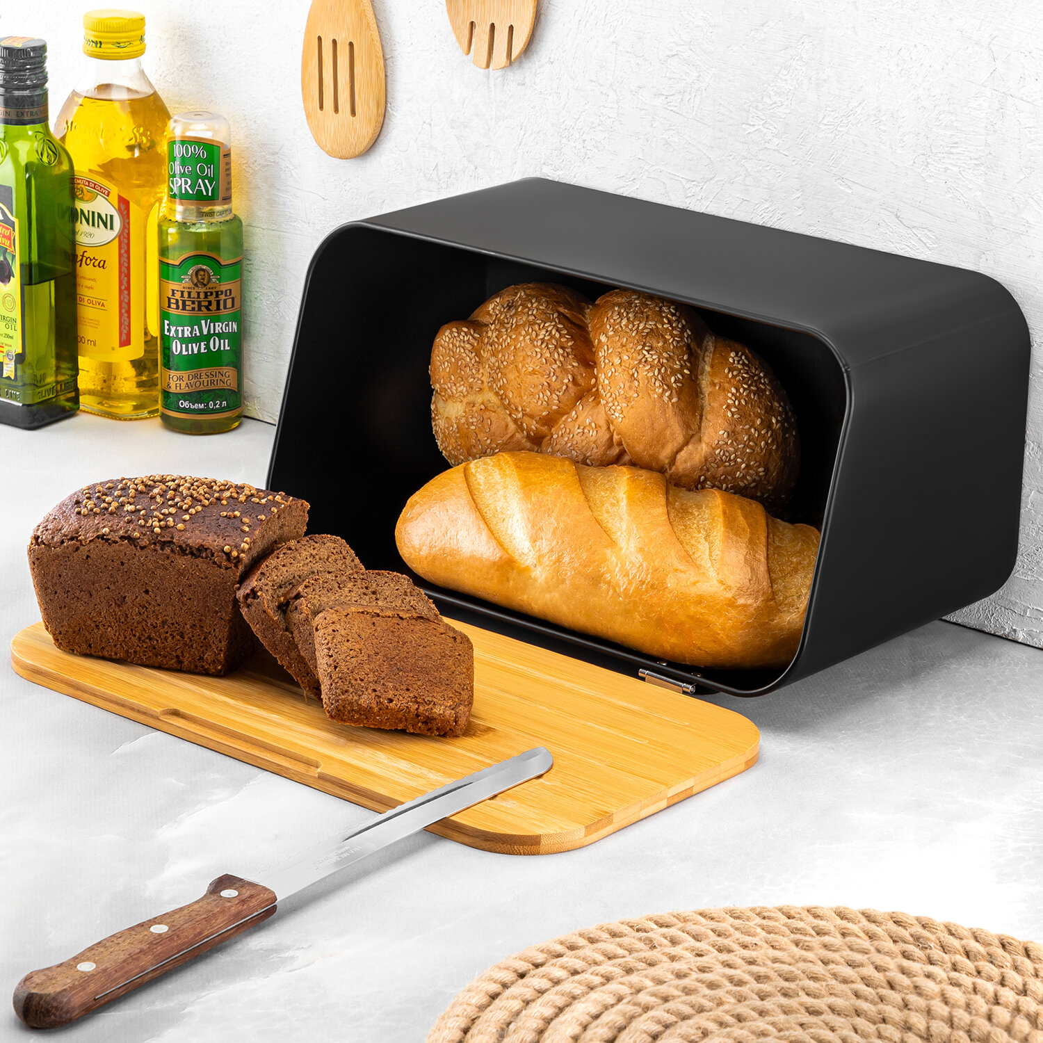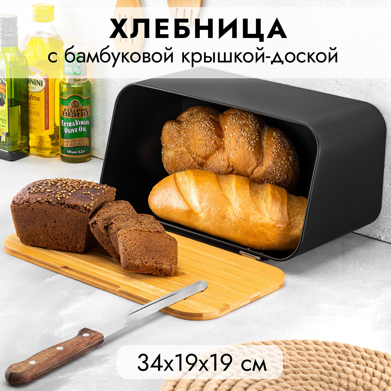 10 цен на Хлебница 34х19х19 см Elan Gallery Черная с бамбуковой крышкой-доской