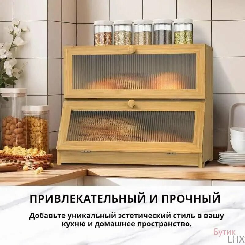 10 цен на ХлебницаДеревянная хлебница с прозрачной стеклянной крышкой – двойной отсек для хранения выпечки, 40 см х 25 см х 33 см