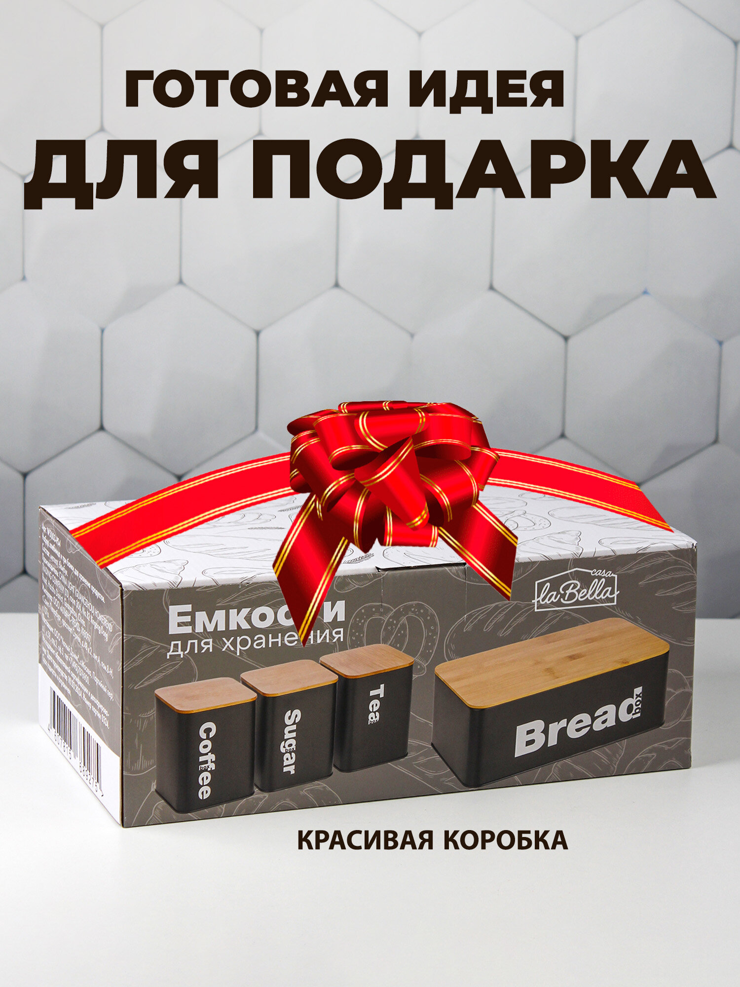 Отзывы на Хлебница металлическая с бамбуковой крышкой и тремя банками для сыпучих продуктов