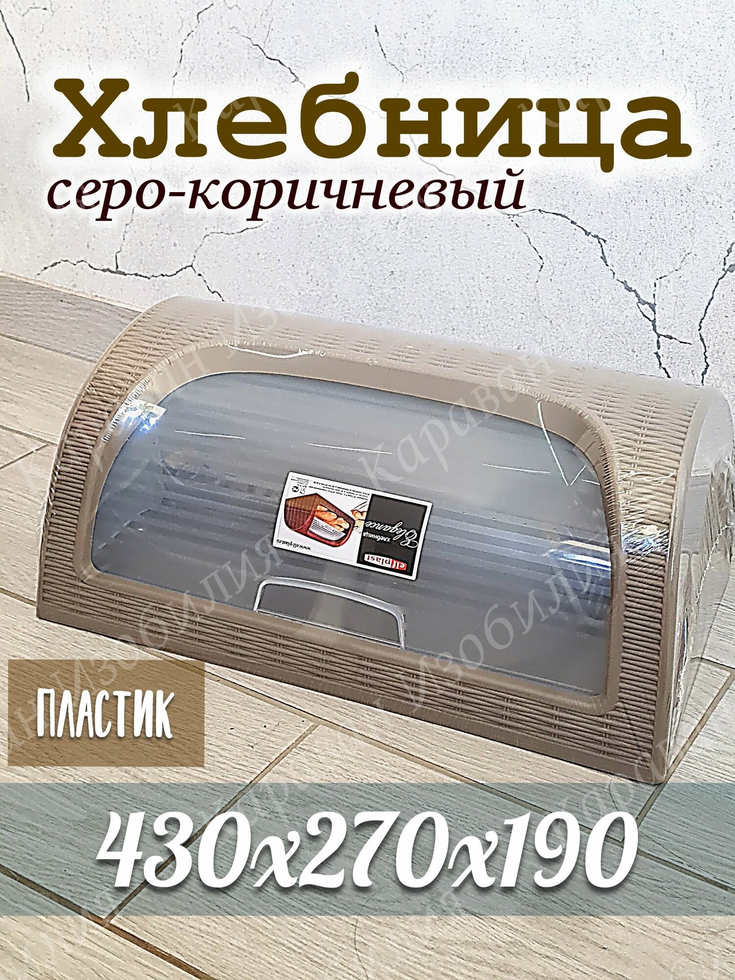 Пластиковая настольная хлебница с крышкой для кухни, вместительная форма не впитывает запахи серо-коричневый цвет h 430Х270Х190мм информация: