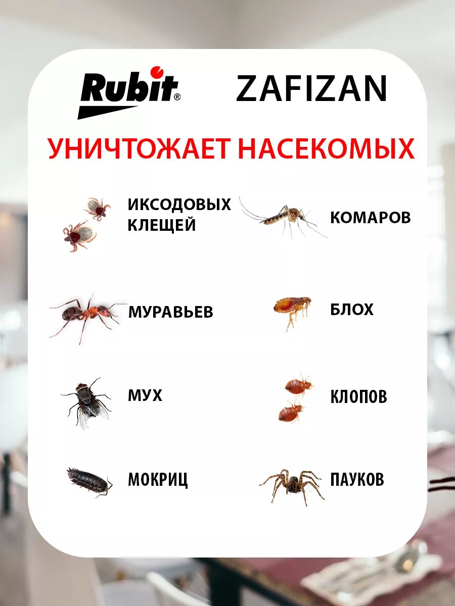 Средство от клещей, комаров, блох, мух, тараканов, муравьев Зафизан 20мл Рубит информация: