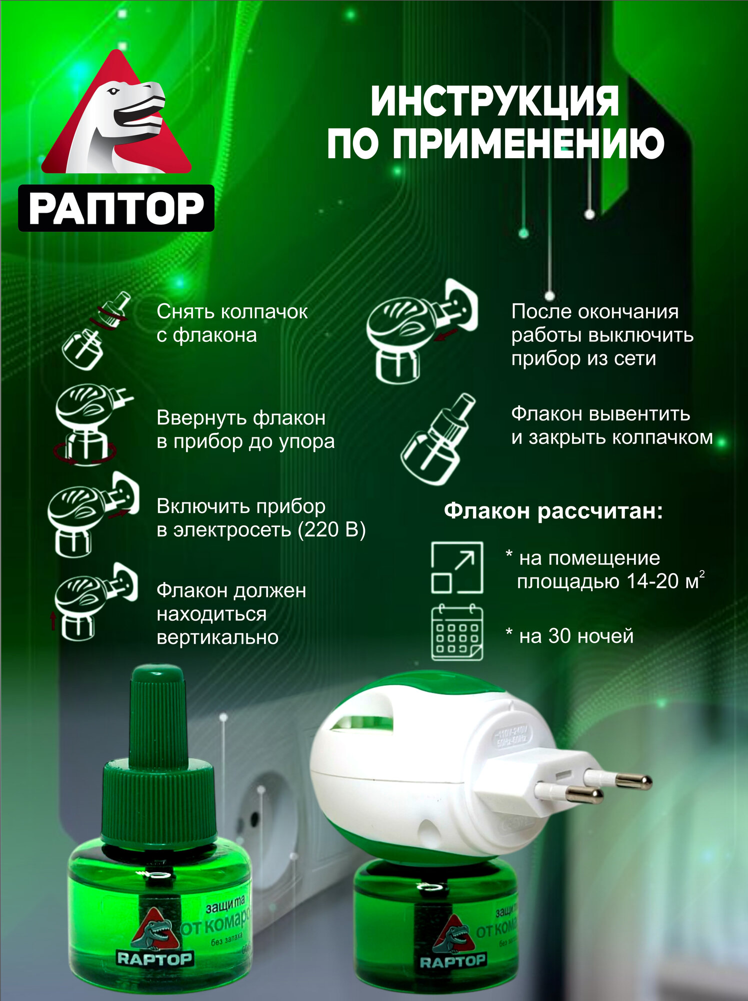 10 цен на Набор жидкость 2 шт. от комаров РАПТОР, фумигатор, повышенная эффективность, на 60 дней