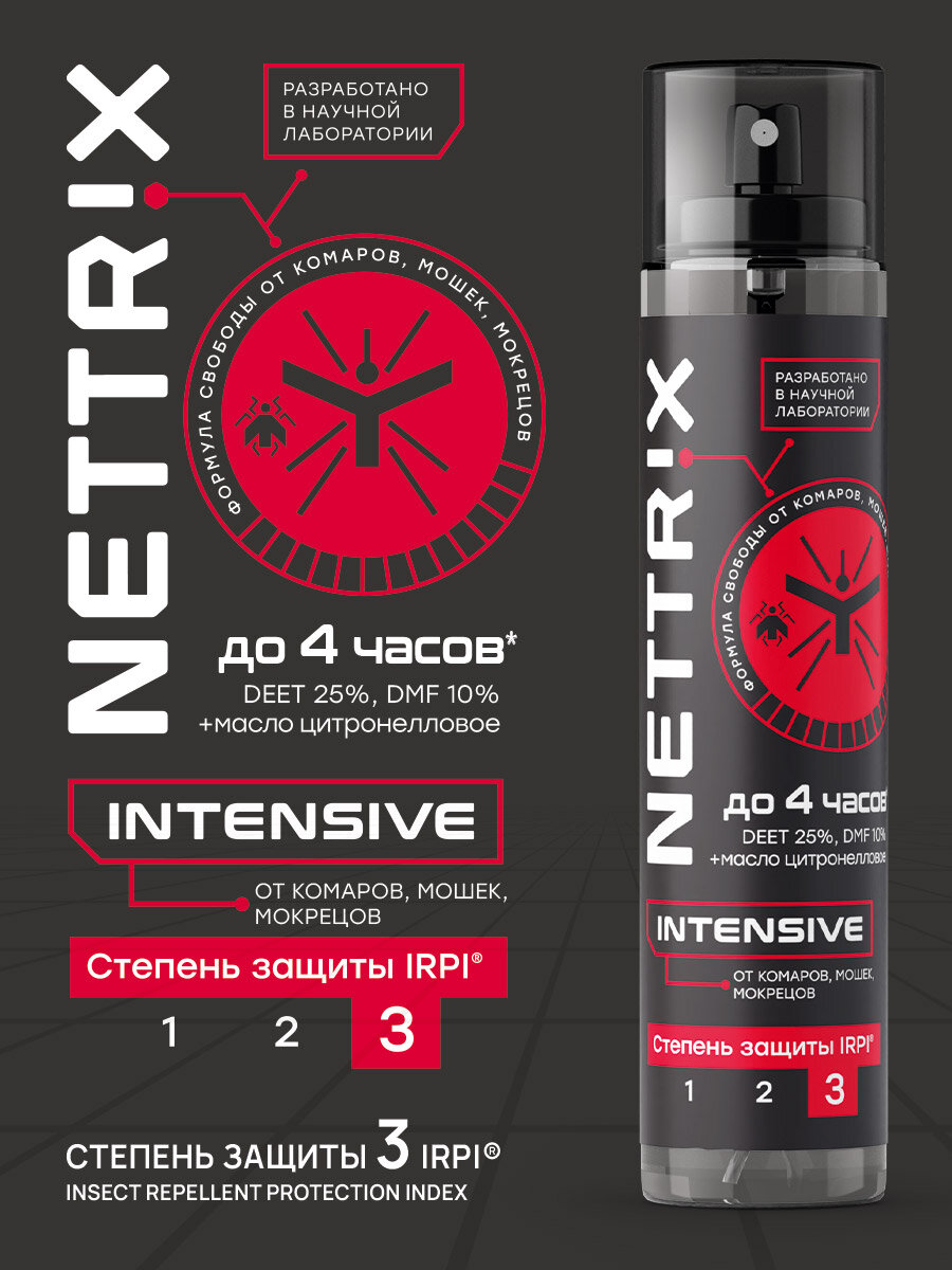 Средство для защиты от комаров и мошек NETTRIX Intensive, спрей 100 мл информация: