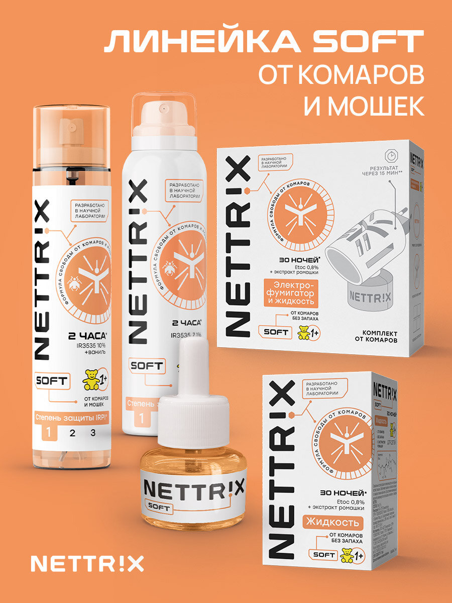 Комплект от комаров электрофумигатор и жидкость на 30 ночей NETTRIX Soft информация: