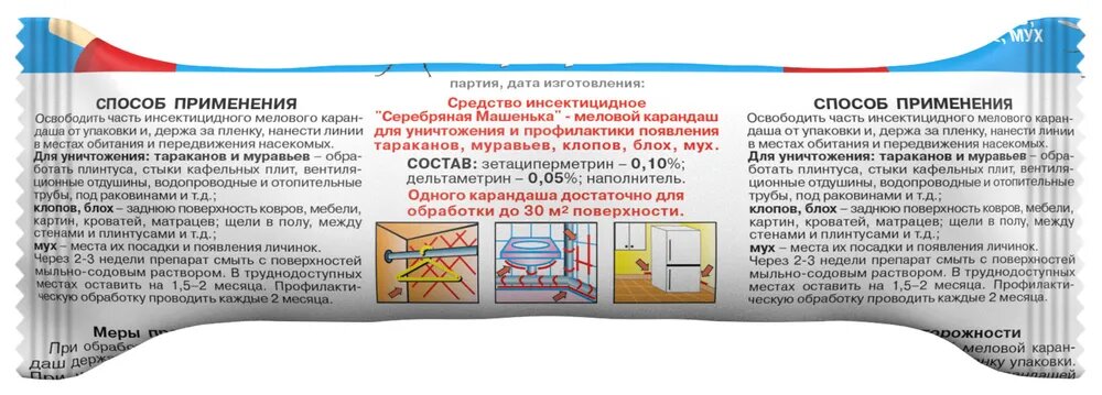 Комплект Мелок от тараканов, муравьев, клопов, мух и прочих насекомых Машенька 4 штуки информация: