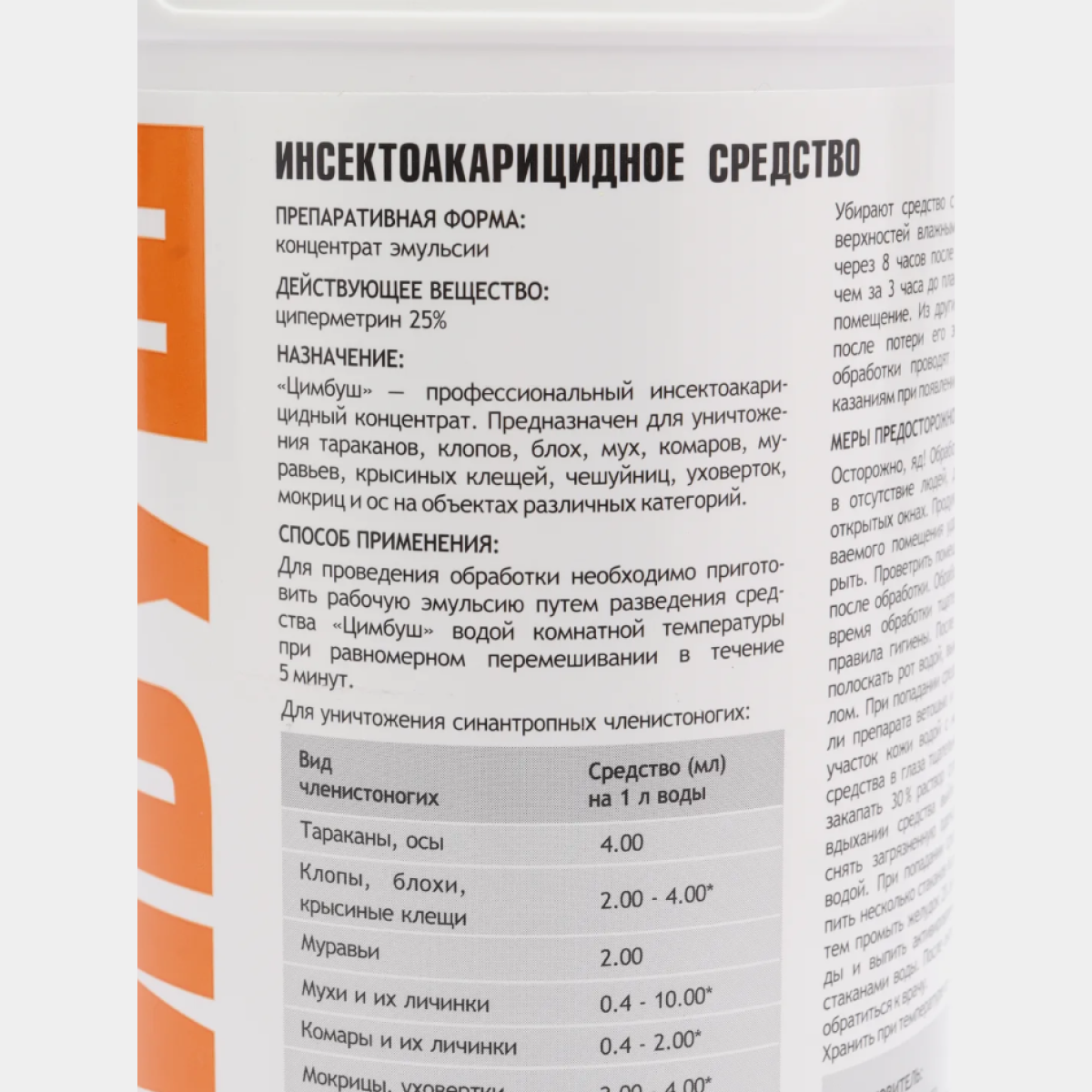 Цимбуш, средство от тараканов, клопов, комаров, мух, блох, профессиональный инсектокарицид, 1 л информация: