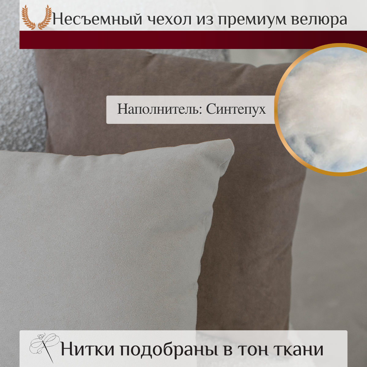 Отзывы на Декоративная подушка велюр 45Х45, комплект 2шт, цвет бежевый и коричневый, наполнитель силиконизированное волокно