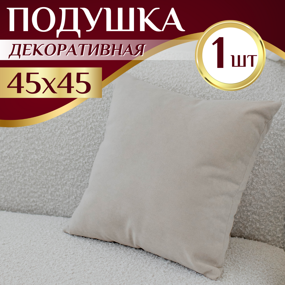 10 цен на Декоративная подушка велюр 45Х45, 1 шт, цвет темно-бежевый, наполнитель силиконизированное волокно