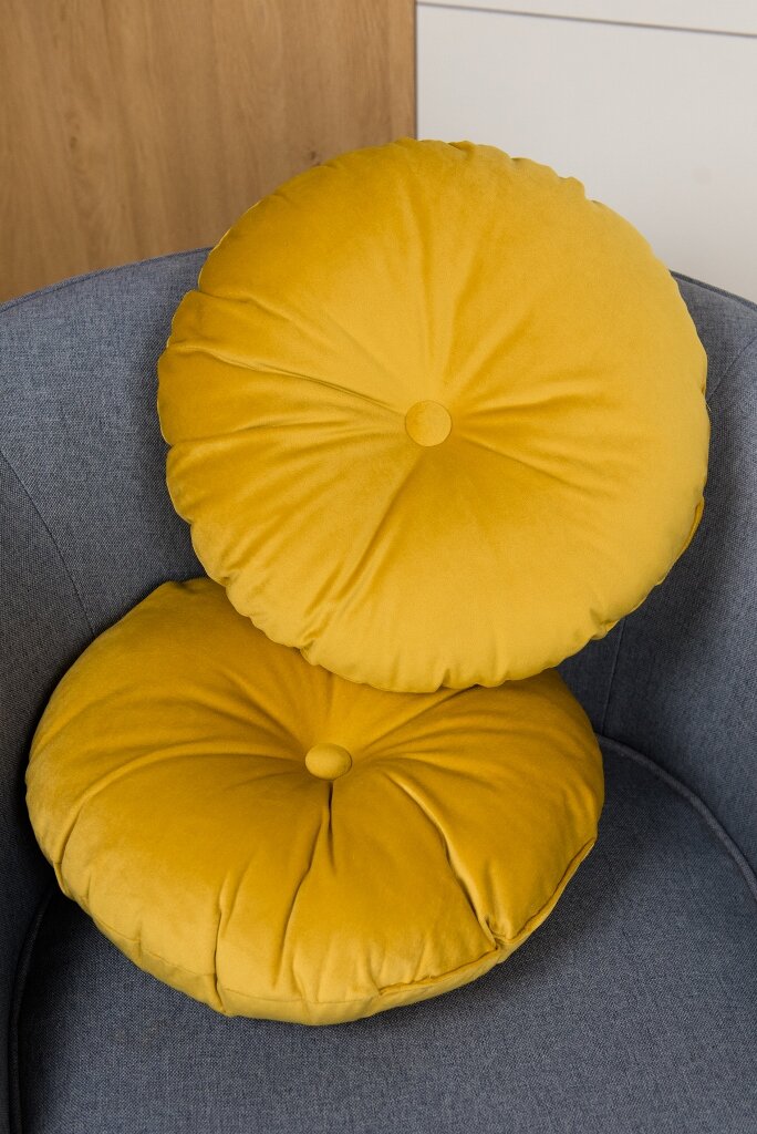 Комплект круглых подушек D37 с пуговицей бархат желтый, 2 шт информация: