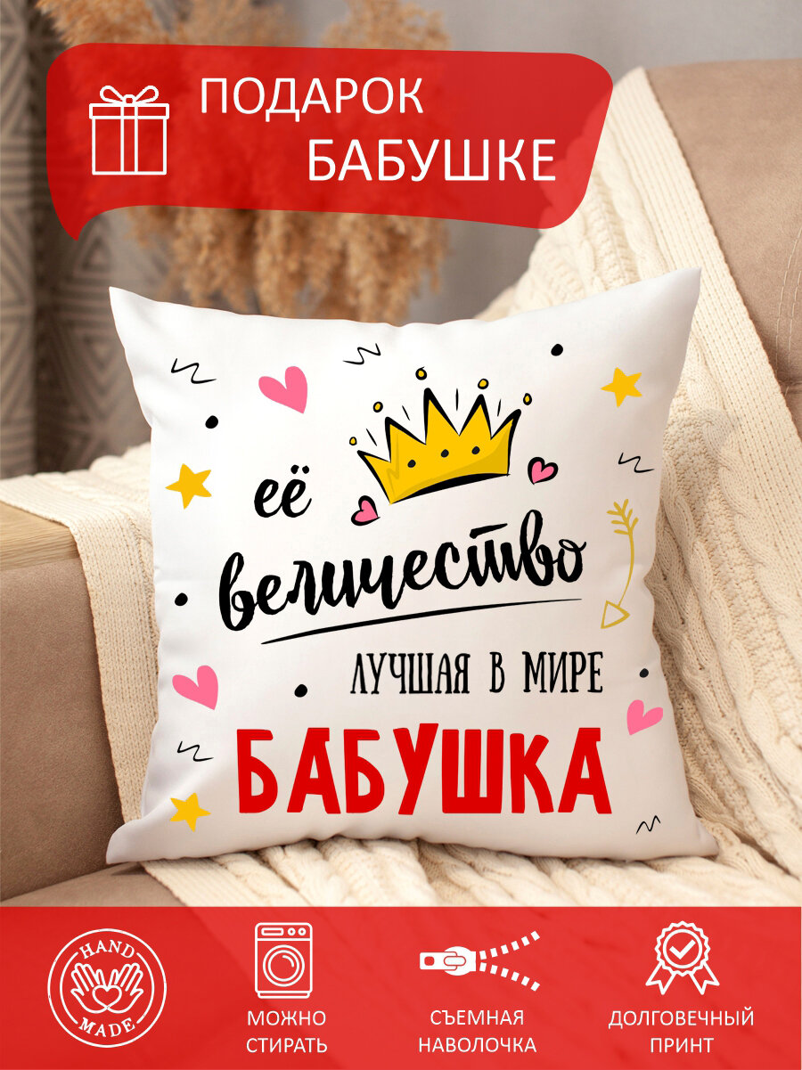Отзывы на Подушка декоративная бабушке ее величество, диванная, с надписью, в подарок, съемный чехол