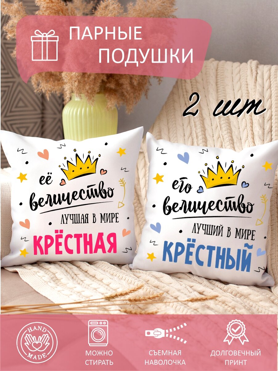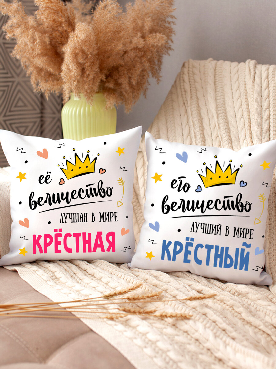 Отзывы на Подушки парные с принтом в подарок крестной маме и крестному папе, декоративные, диванные, комплект 2 шт