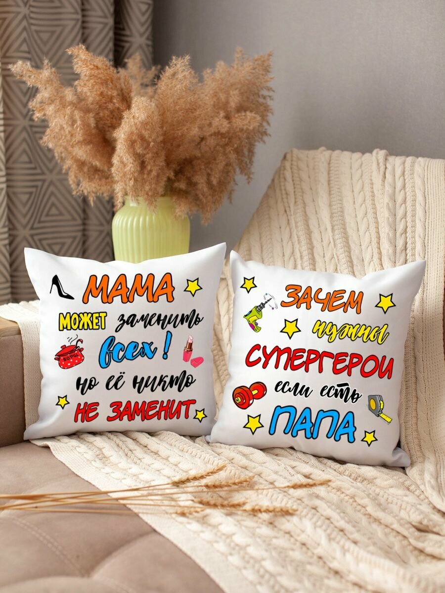 10 цен на Подушка декоративная маме и папе, с принтом, диванная, 35 x 35 см, съемная наволочка, на молнии, 2 шт в комплекте