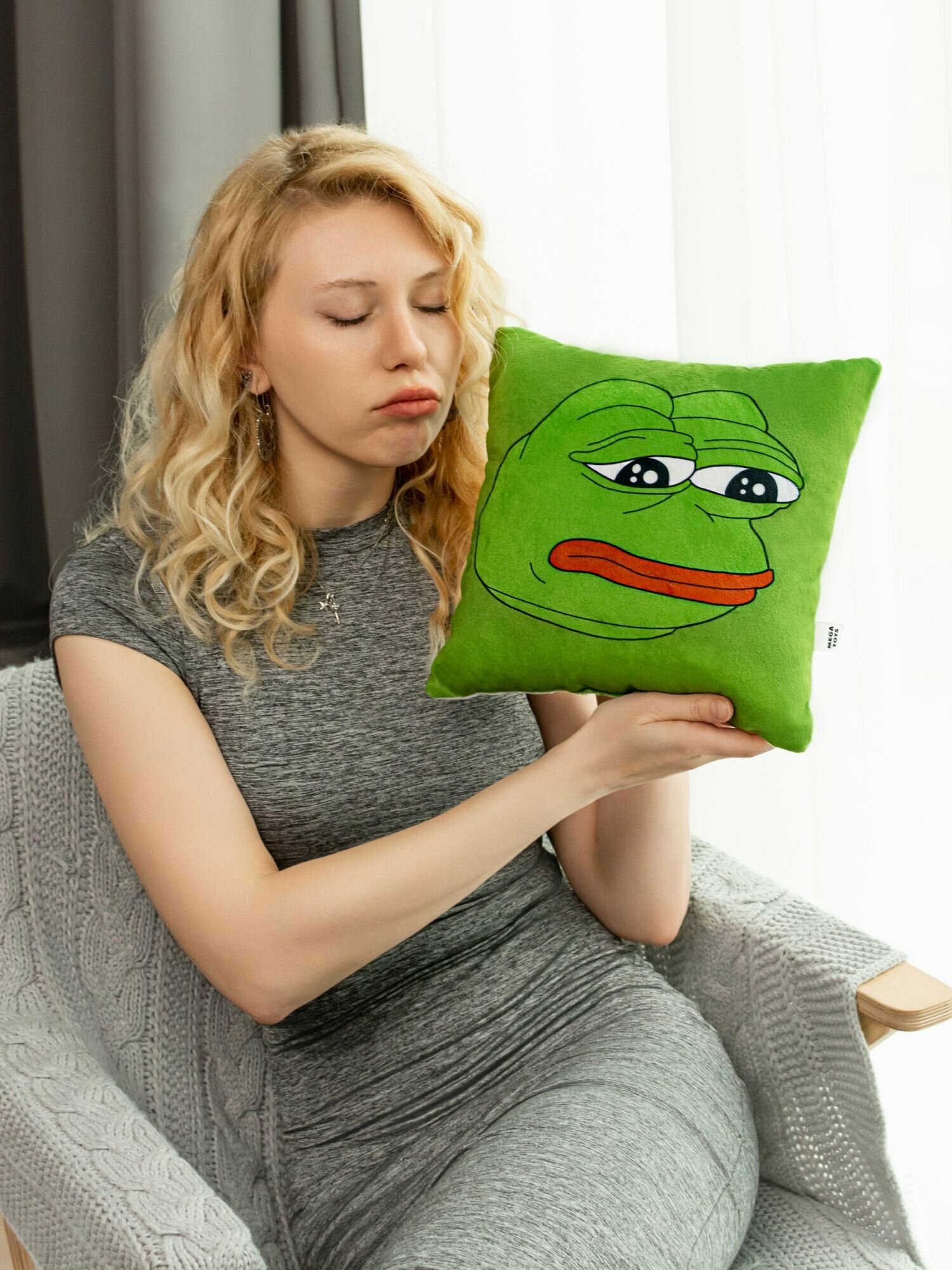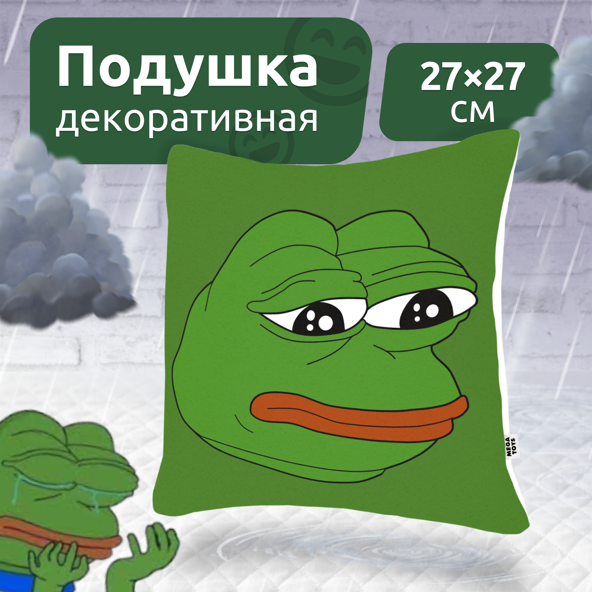 Отзывы на Подушка декоративная на диван для дома с рисунком MEGA TOYS в подарок с принтом мема лягушонок Пепе Pepe 27x27 см
